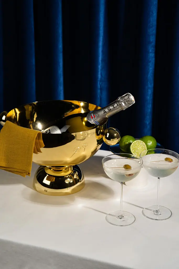 Contemporary Modern, Kubbe Champagne Bucket, Varnished Brass