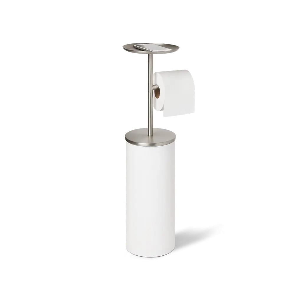 The Continental freestanding toilet paper holder with roll storage and phone stand gives the bathroom a contemporary touch. Additionally, its weighted base provides ease of use as it avoids tipping and falling.Features304 grade stainless steel constructionHold up to 4 rolls toilet paper rollsExtra storage space for extra toilet paper rolls5-1/16" toilet paper rod tube6-7/8" round base with weighted base22-7/8" overall heightFreestanding Design, no installation requiredSmart devices holder on the topProp 65 disclaimerWARNING: This product can expose you to chemicals, including lead which is known to the State of California to cause cancer or birth defects or other reproductive harm, for more information, go to www.p65warnings.ca.gov