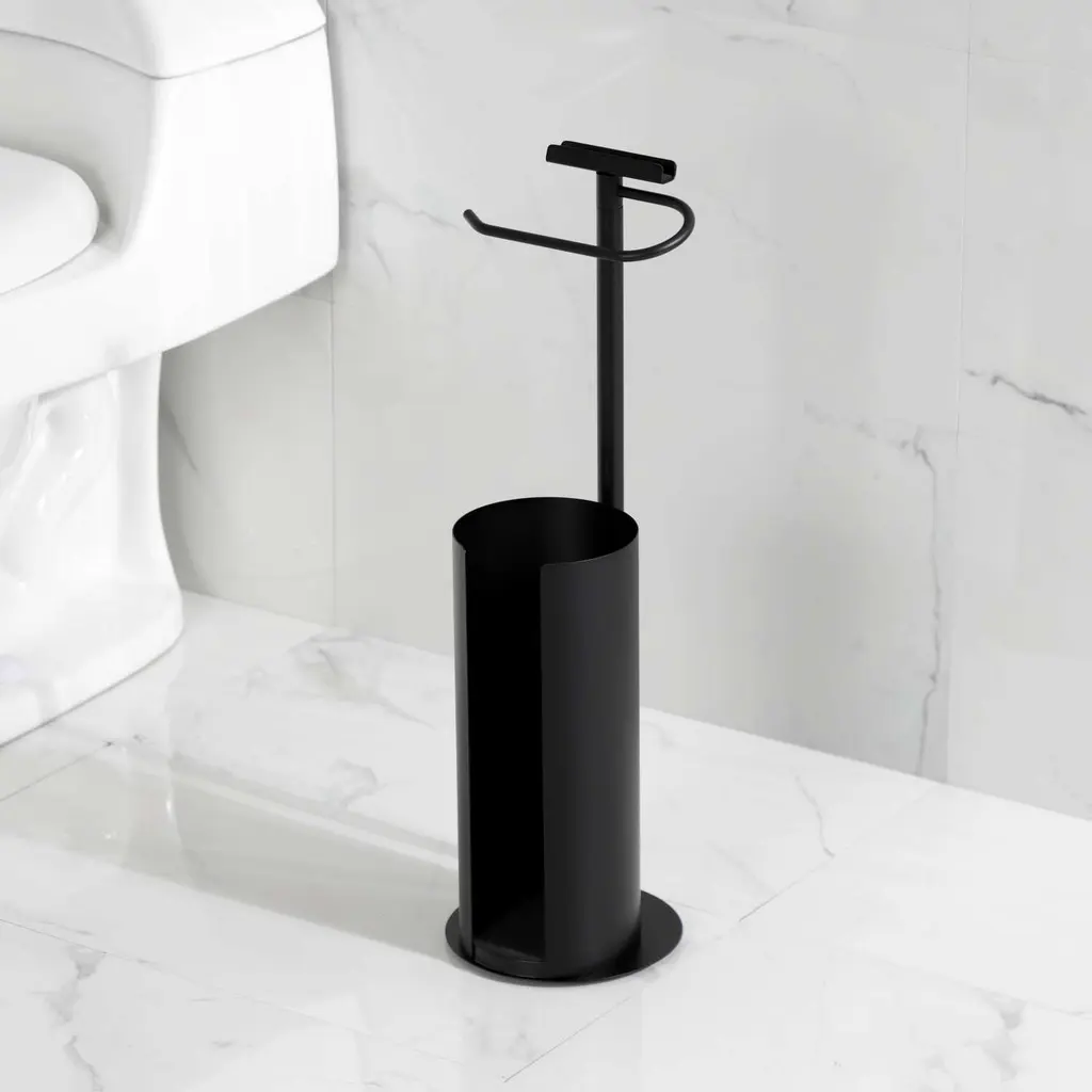 Continental Freestanding Toilet Paper Holder With Roll Storage And Phone Stand - Matte Black