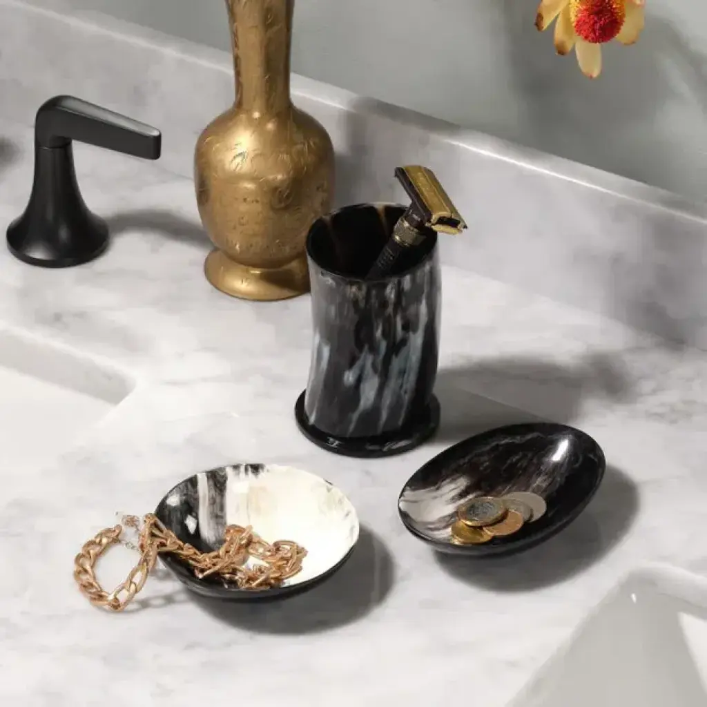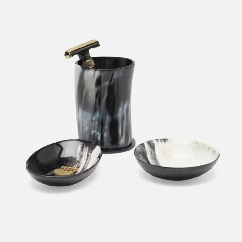 Our Conway bath accessories collection made from sustainably stylish African horn adds dimension to the bath. The designers at Pigeon & Poodle believe the details of a home are just as important as the furniture. A gorgeous toothbrush holder or handcrafted canister can elevate an entire bath, the perfect frame can heighten the feel of a whole space, and a good-looking storage basket can be your look’s missing link. With thoughtful design and top-notch craftsmanship, Pigeon & Poodle create home accessories with the care and attention typically reserved for larger pieces of décor.