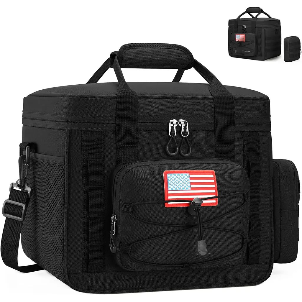 Outstanding Insulation: The insulated cooler bag is made from breathable, lightweight, waterproof polyester material, providing both comfort and convenience. It features excellent insulation, keeping items cold for 16-24 hours and warm for 6-8 hours, ensuring your drinks stay chilled and your food fresh. The main compartment utilizes an aluminum foil lining and seamless heat-pressing technology to ensure 100% waterproof and leak-proof performance. Large Capacity: For 20L option: This cooler lunch box measures 14.17 in/360 mm in length, 9.84 in/250 mm in width, and 11.02 in/280 mm in height, offering a total capacity of 20L. It can easily store clothes, shoes, and other travel essentials, perfectly meeting your travel needs. For 25L option: This cooler lunch box measures 12.60 in/ 320 mm in length, 7.87 in/ 200 mm in width, and 16.54 in/ 420 mm in height, offering a total capacity of 25L. Three Carrying Options: The insulated lunch bag can be hand-carried, worn crossbody, or slung over your shoulder, allowing you to choose based on your preference, comfort, and usage needs. The detachable and adjustable shoulder strap can be modified as needed, and the thickened hand strap is designed for added comfort, making it easy to hold for extended periods. MOLLE System: Featuring a laser-cut MOLLE system, this soft cooler allows for additional gear attachments and a multi-pocket design to meet various accessory needs. It enables you to separate and store items like notebooks, phones, iPads, and other essentials. Versatile Usage: This insulated bag is perfect for workouts, cycling, gym sessions, yoga, beach trips, swimming pools, hunting, hiking, camping, practice days, weekend getaways, and many outdoor activities. It can serve as a tactical bag, insulated lunch box, travel bag, or workout bag, suitable for both men and women. Package Content 1 x Cooler Bag