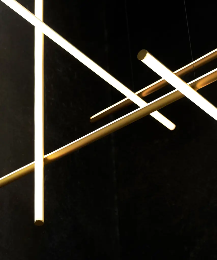 Coordinates is a lighting system consisting of horizontal and vertical strip lights that form illuminated grid-like structures of various complexities. Each element is made of extruded anodized aluminum with a champagne finish and a diffuser in platinum optical silicone with an integrated LED strip (CRI 95). Each element is powered and supported by an invisible electrical and mechanical connection designed specifically to allow for the composition of the three ceiling models (C1 – C2 – C4), which may be combined with the respective Long versions for high ceilings (C1 Long, C2 Long, C4 Long). The ‘Module C' is also available for large-scale installations Available in two finishes: Champagne and Argent Behind the design: This design evolved from a commission for the feature lighting of the main dining area of the historic Four Seasons restaurant in New York City. The restaurant relocated and opened in 2018 with the interiors designed by São Paolo-based architect Isay Weinfeld. This authentic design is produced in Italy exclusively by Flos.