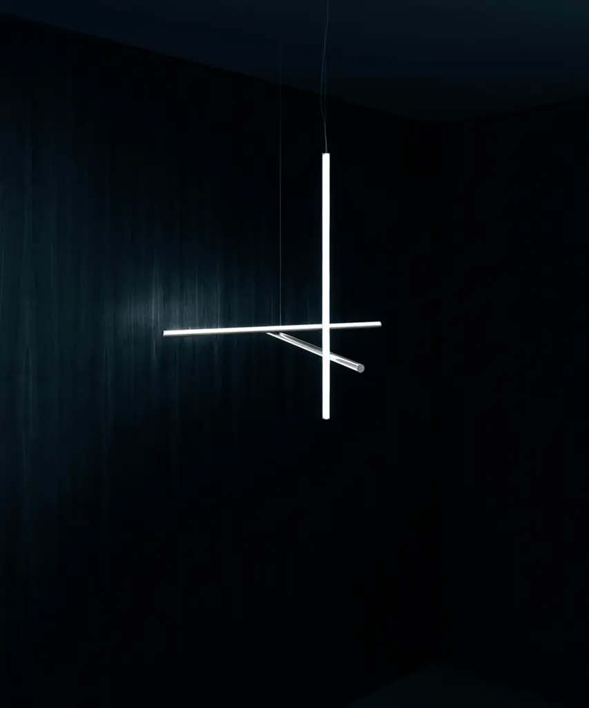 Coordinates is a lighting system consisting of horizontal and vertical strip lights that form illuminated grid-like structures of various complexities. This collection of standard chandeliers of pared-down configurations can be used in any setting. Each suspended element is powered and supported by an invisible electrical and mechanical connection designed specifically to allow for the composition of the four hanging models (S1, S2, S3, S4). The S Module is also available to create semi-custom designs for large-scale installations. Behind the design: This design evolved from a commission for the feature lighting of the main dining area of the historic Four Seasons restaurant in New York City. The restaurant relocated and opened in 2018 with the interiors designed by São Paolo-based architect Isay Weinfeld. This authentic design is produced in Italy exclusively by Flos.