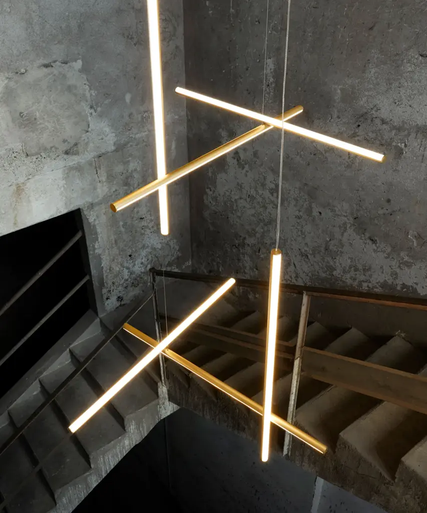 Coordinates is a lighting system consisting of horizontal and vertical strip lights that form illuminated grid-like structures of various complexities. This collection of standard chandeliers of pared-down configurations can be used in any setting. Each suspended element is powered and supported by an invisible electrical and mechanical connection designed specifically to allow for the composition of the four hanging models (S1, S2, S3, S4). The S Module is also available to create semi-custom designs for large-scale installations. Behind the design: This design evolved from a commission for the feature lighting of the main dining area of the historic Four Seasons restaurant in New York City. The restaurant relocated and opened in 2018 with the interiors designed by São Paolo-based architect Isay Weinfeld. This authentic design is produced in Italy exclusively by Flos.