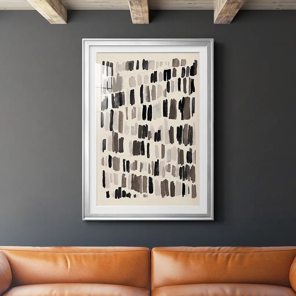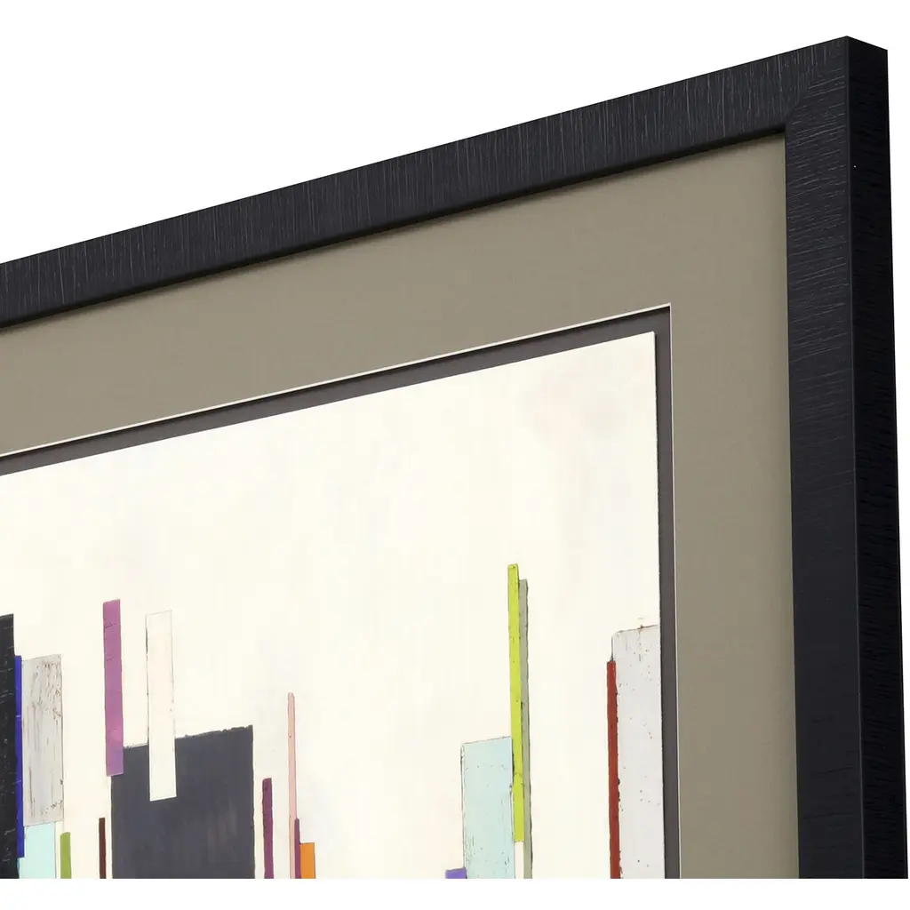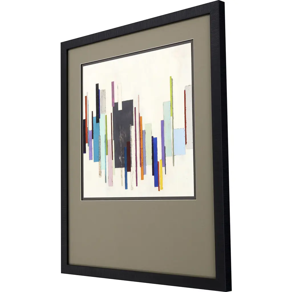 Giclee is hand embossed and float mounted. A moss colored mat is off-set and raised. Framed in a black block contemporary moulding.