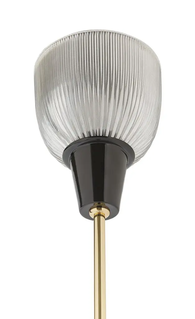 Coppa Aperta embodies the Milanese design cleverness of the 1950s. With a simple industrial glass, used to illuminate the old trams of the city of Milan, the two designer friends created a timeless piece, capable even today of evoking memories of happy and carefree times aboard the convoys running noisily through the city streets. The prismatic diffuser, supported by a brass structure, allows the distribution of light wires to the room, creating soft and domestic atmospheres.