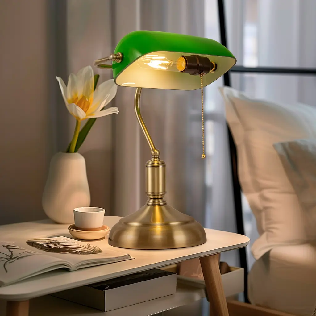 Copper E26 Single-Head Bedside Table Lamp, Stylish Corded Nightstand Light With Green Shade, Cozy Ambient Lighting - 10.6*7.1*15 - 10.6*7.1*15 - Green