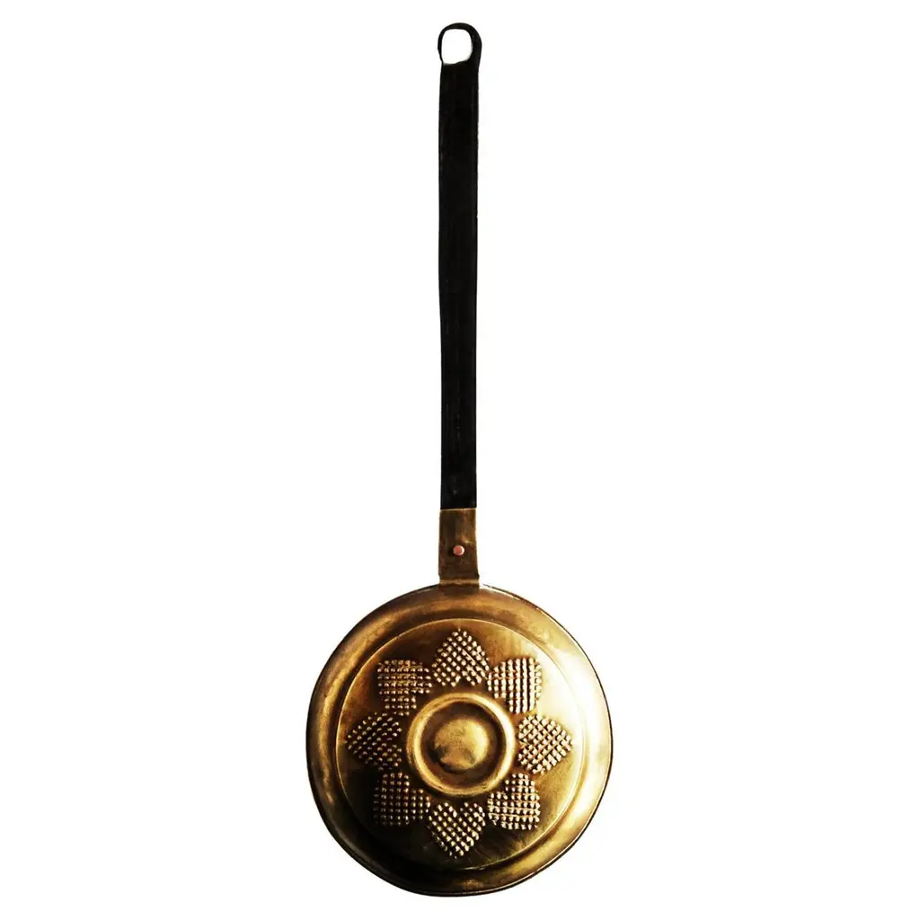 Enhance your kitchen with this elegant set of handcrafted pure copper utensils, including a deep ladle and a perforated skimmer. Designed for both functionality and aesthetics, these timeless tools are perfect for serving, straining, and frying. The high-quality copper construction ensures excellent heat distribution, while the tin-lined interior makes them safe for food contact. The ergonomic wooden handles provide a comfortable grip and prevent heat transfer, ensuring ease of use. Complete with hanging loops for convenient storage, this set is as decorative as it is practical, bringing rustic charm to any kitchen.