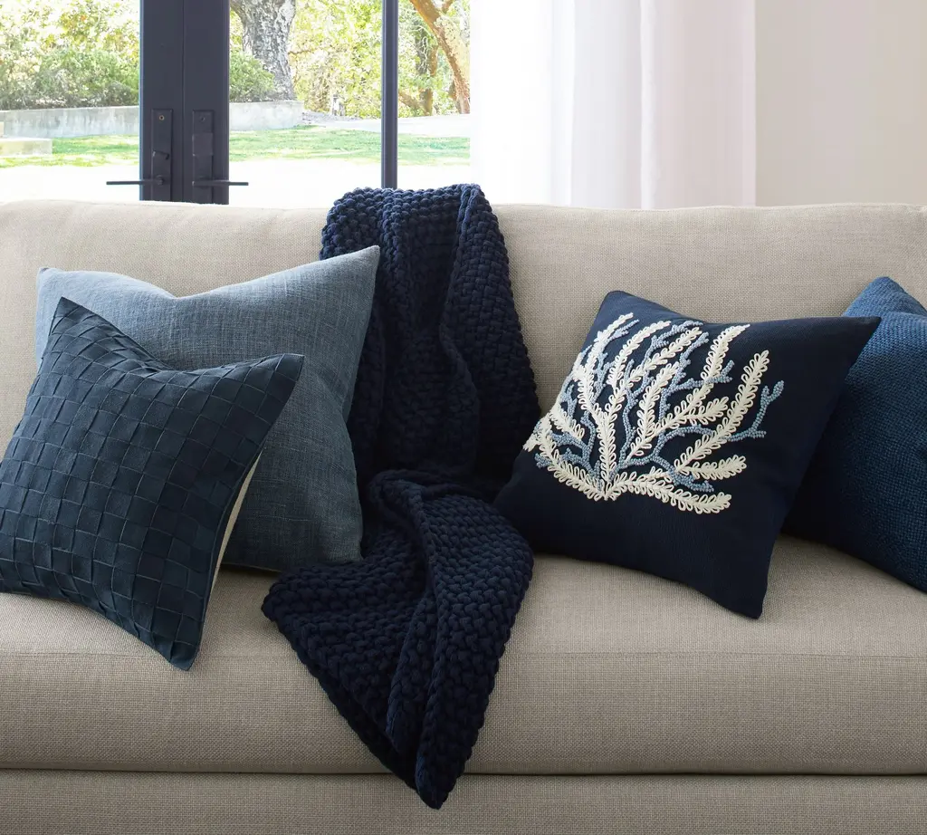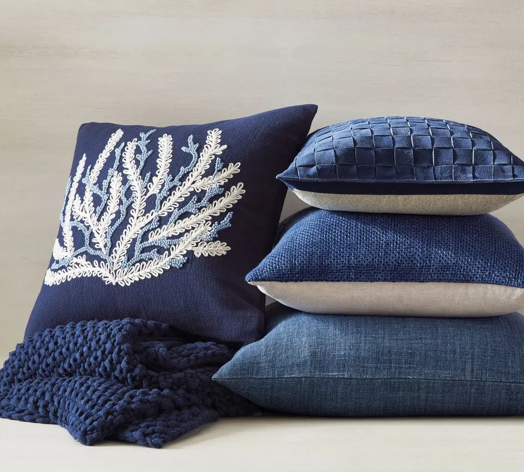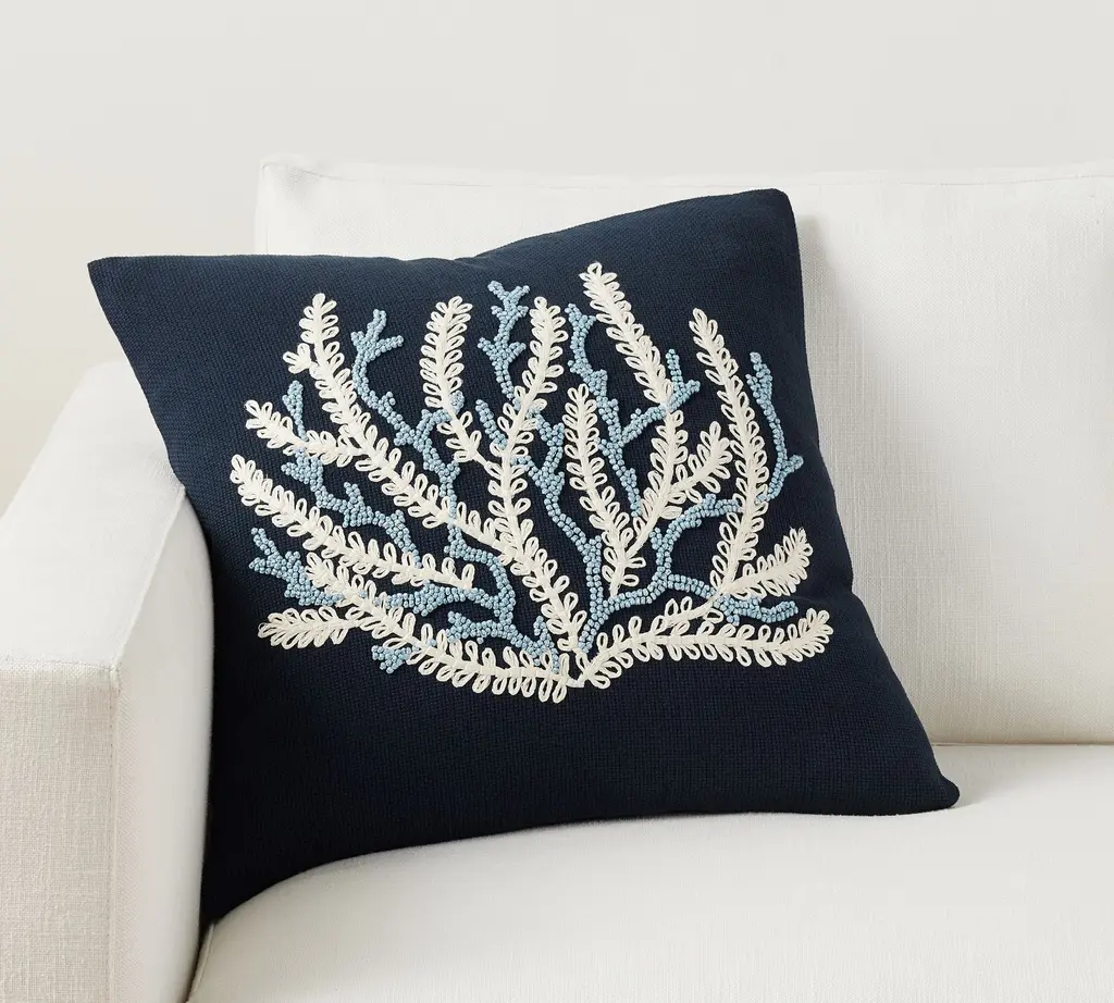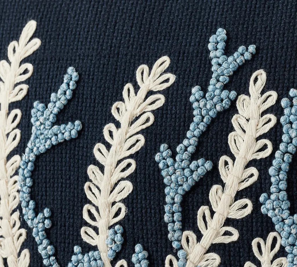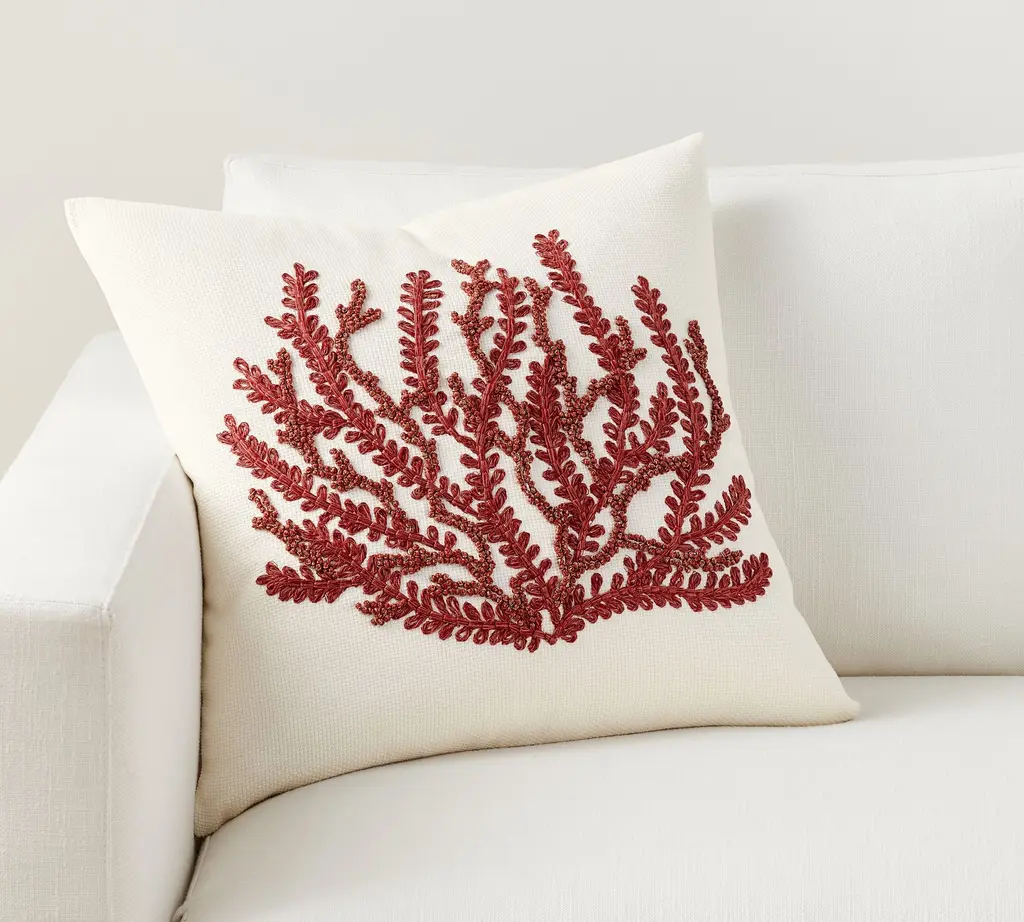 Reminiscent of summer spent at Cape Cod, this adds a perfectly coastal look to your sofa or bed. Crafted of pure cotton, our pillow cover is smooth-to-the-touch while the embroidered coral provides just the right amount of texture. We love the organic shape of this design and how pairs well with both solids and prints.