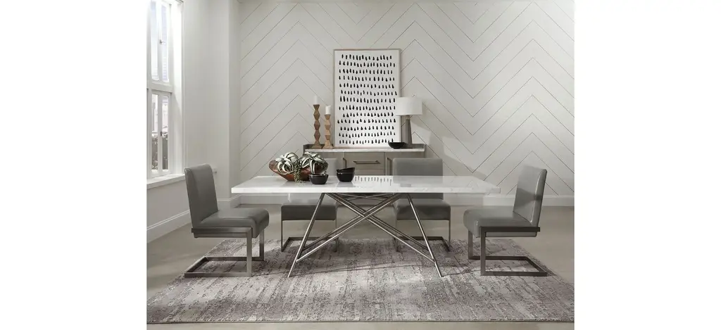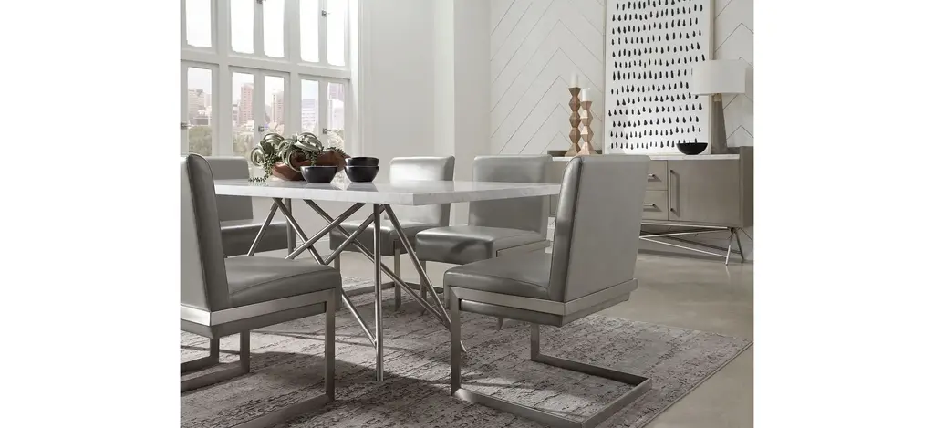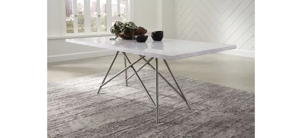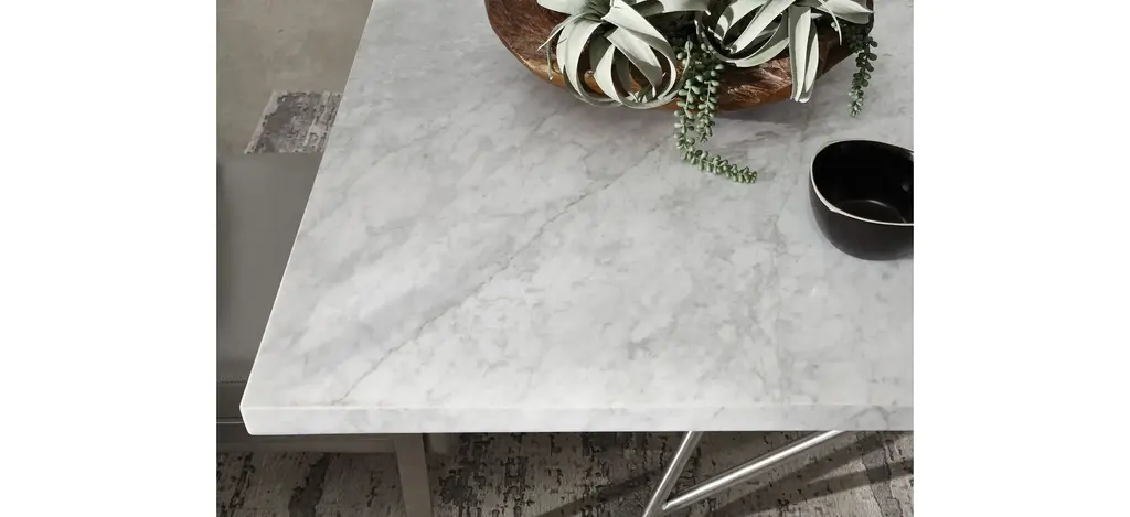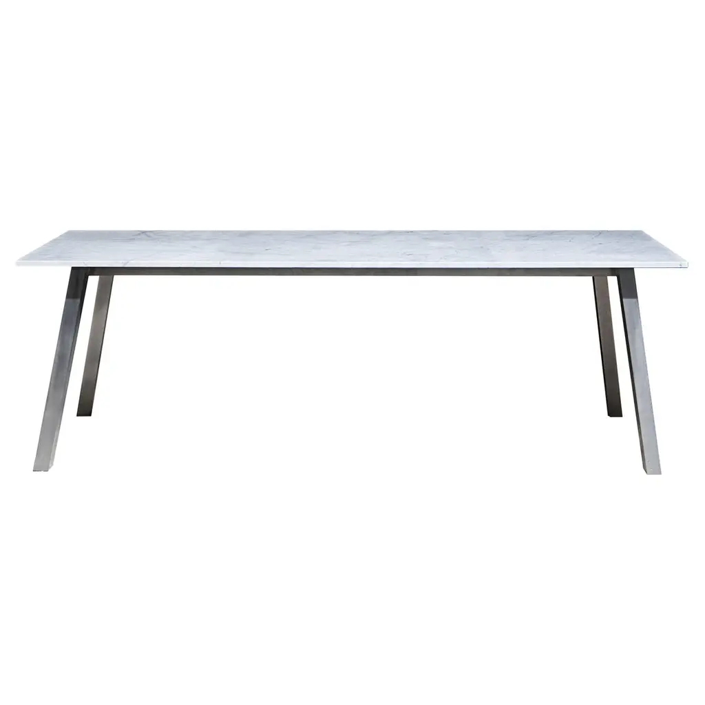 Elemental and modern, the Coral Dining Table is a symbol of timeless design. Clad in authentic Carrara marble, traces of natural veining lends this table its unique character, while a structural stainless steel tube base provides a reciprocal anchoring point.