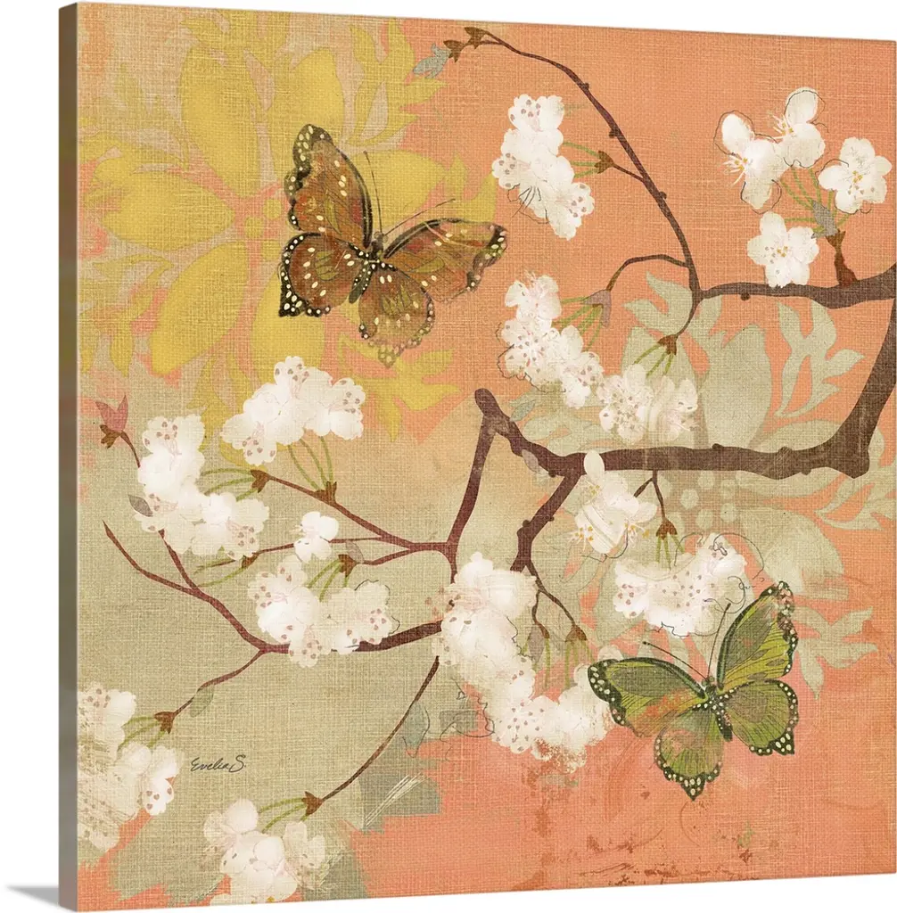 Coral Large Cream Multi Blossoms Butterfly wall art for home and office decor. Discover canvas art prints, photos, mural, big canvas art and framed wall art in GreatBigCanvas.com's varied collections.