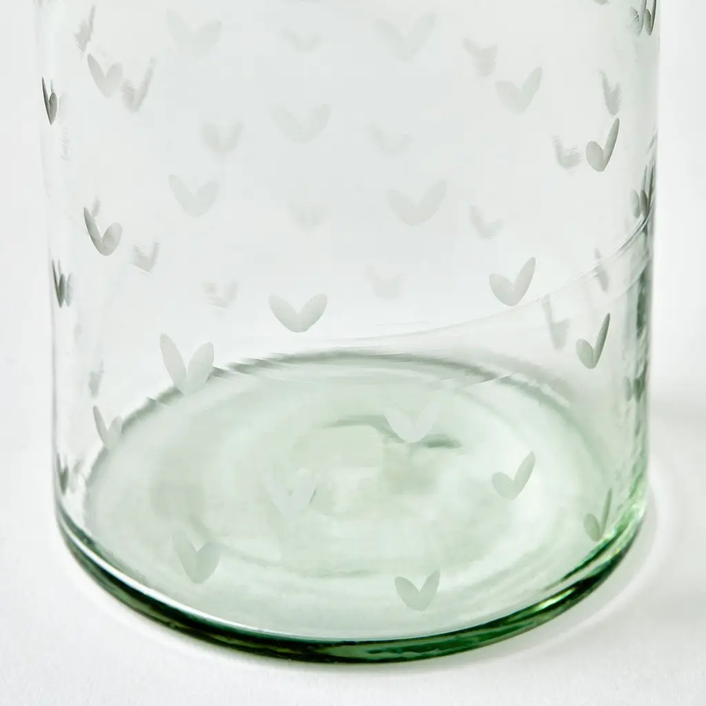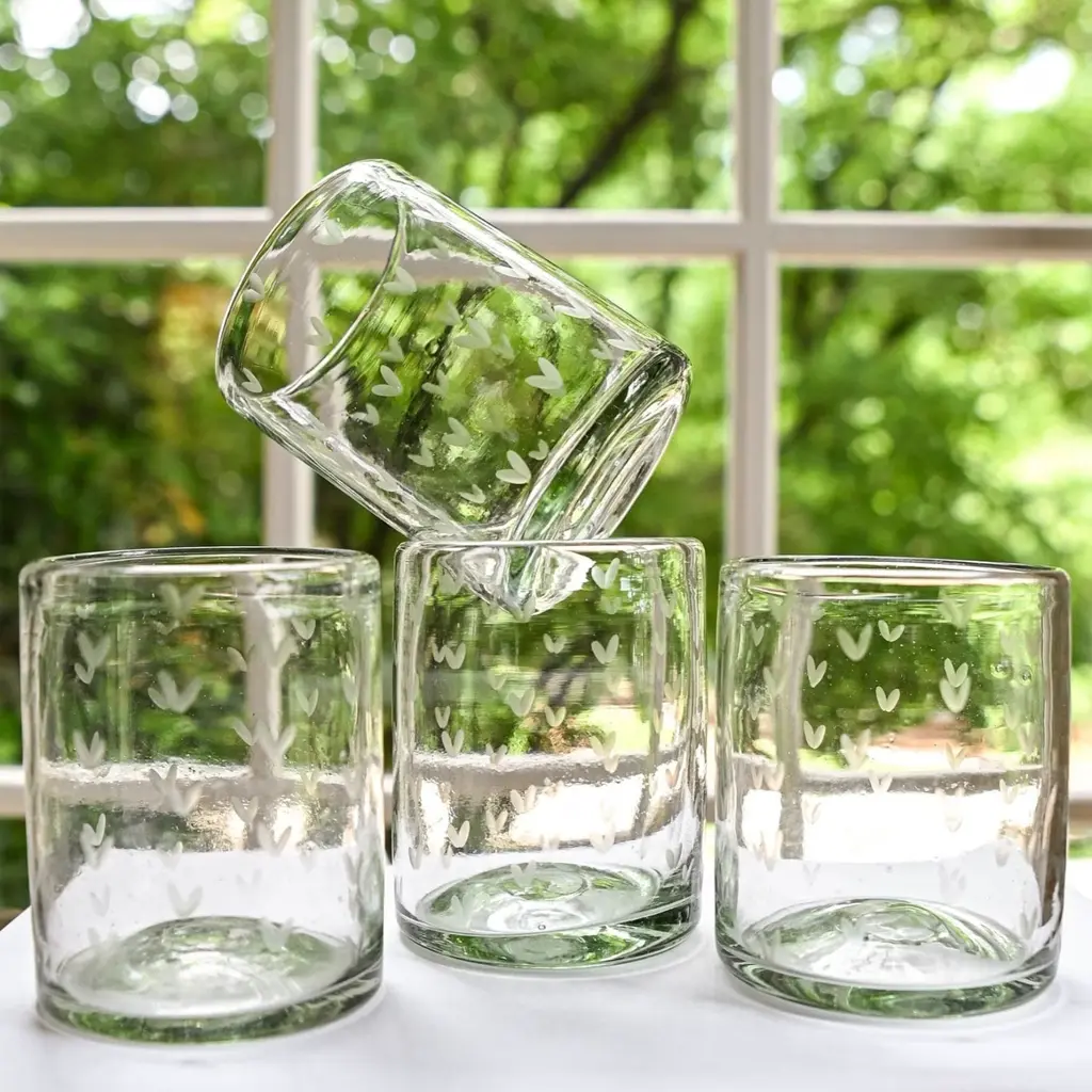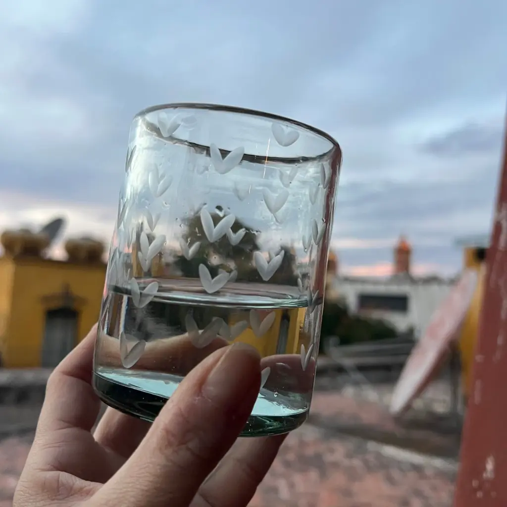 Meet your new happy-hour sweetheart: hand-blown recycled glass in a clean clear hue, crowned with a delicate hand-etched heart—celebrating love and craftsmanship straight from Central Mexico. Each glass is its own little masterpiece, shimmering with subtle shifts in color and texture that make your pour feel poetic and personal. Romantic, sustainable, and effortlessly beautiful—this is the glassware that turns routine into ritual.