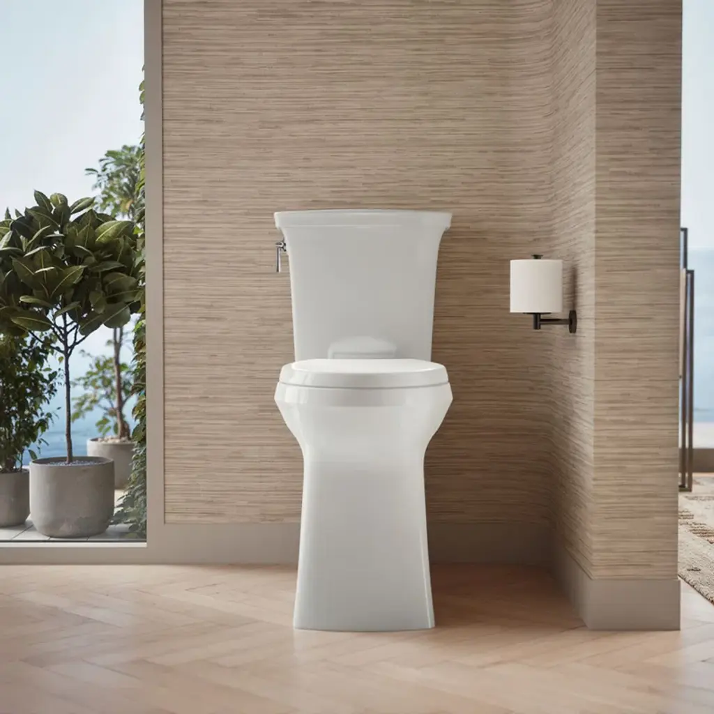 The Corbelle Tall two-piece elongated toilet is 2-1/2-in taller than Comfort Height toilets to provide ultimate accessibility and ease of use. Corbelle Tall delivers a powerful swirling flush with Revolution 360 flushing technology to keep your bowl clean longer than a conventional flush, and the ContinuousClean XT system works with white cleaner tablets to add even more cleaning power. The toilet features a skirted trap-way with graceful, clean lines and is easy to install with the ReadyLock system because it installs to the floor flange, eliminating the need to drill holes while offering the same secure installation as nonskirted toilets.