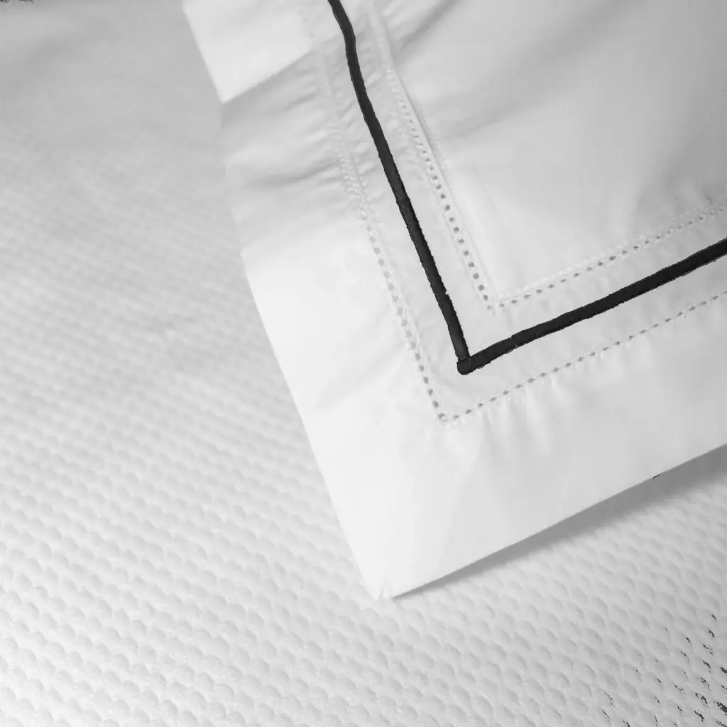 Elevate your sleep space with the luxurious Cord and Heimstich Top Sheet from The Lino. Its fine craftsmanship and timeless finish, featuring intricate cord embroidery and hemstitch detailing, adds an elegant touch to any bedroom. Made from 100% Egyptian cotton with a 400-thread count percale weave, experience the ultimate comfort and sophistication in your sleep. Highlights