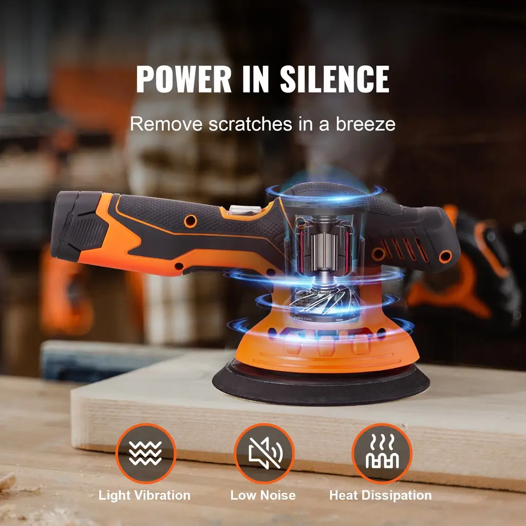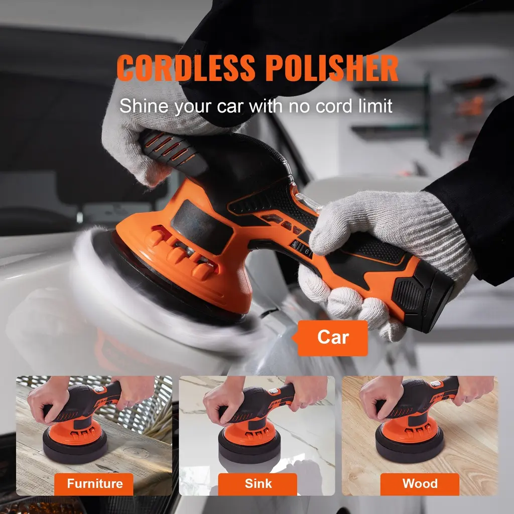 Say Bye to Cords: Work more efficiently around the house, in the garage, or on the job site with a 6-inch cordless rotary polisher for car detailing. With its powerful 48W motor, you'll be amazed at the strength and low noise it delivers! Get rid of the trouble of dragging, yanking, and positioning cords. It's time to embrace the convenience of cordless freedom! Speed is On Your Side: Take control of your car polisher with the 6-level speed control! Ranging from 2700 to 5200 RPM, you have the flexibility to adjust the buffing machine according to your needs. Whether it's the low speed for gentle waxing and buffing, medium speed for thorough polishing and cleaning, or high speed for removing stubborn defects and oxidation, this orbital polisher has you covered. Never Slow Down: With just 1 hour of charging time, you'll have enough power for up to 22-55 minutes of continuous operation. Enjoy a fast and efficient car polishing experience without worrying about running out of juice. The ergonomic design is comfortable to hold and easy to carry, so you can take it with you wherever you go. Get ready to tackle your polishing projects in no time! Everything You Want: This all-in-one kit includes 1 DA polisher, 4 foam pads, 1 wool pad, 1 bag, 2 batteries 2.0Ah / 1 battery 2.0Ah, and a fast charger. No more searching for additional accessories, as the car buffers and polishers kit has everything you need. Choose between three high-quality PU pads to match your desired finish, and work right out of the box! More Than One Way to Work: This cordless buffer has a battery status reminder function in 3 colors of indicator lights. It turns green when the battery is fully charged and it will turn red when the battery needs to be charged. This versatile tool is perfect for polishing paint, removing swirls and scratches, restoring clarity to headlights, and more! Package Content 1 x DA Polisher 4 x Polishing Pad 1 x Wool Pad 1 x Towel 2 x 2.0Ah Battery (2PCS option) / 1 x 2.0Ah Battery (1PC option) 1 x Fast Charger 1 x Bag