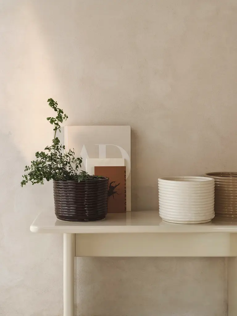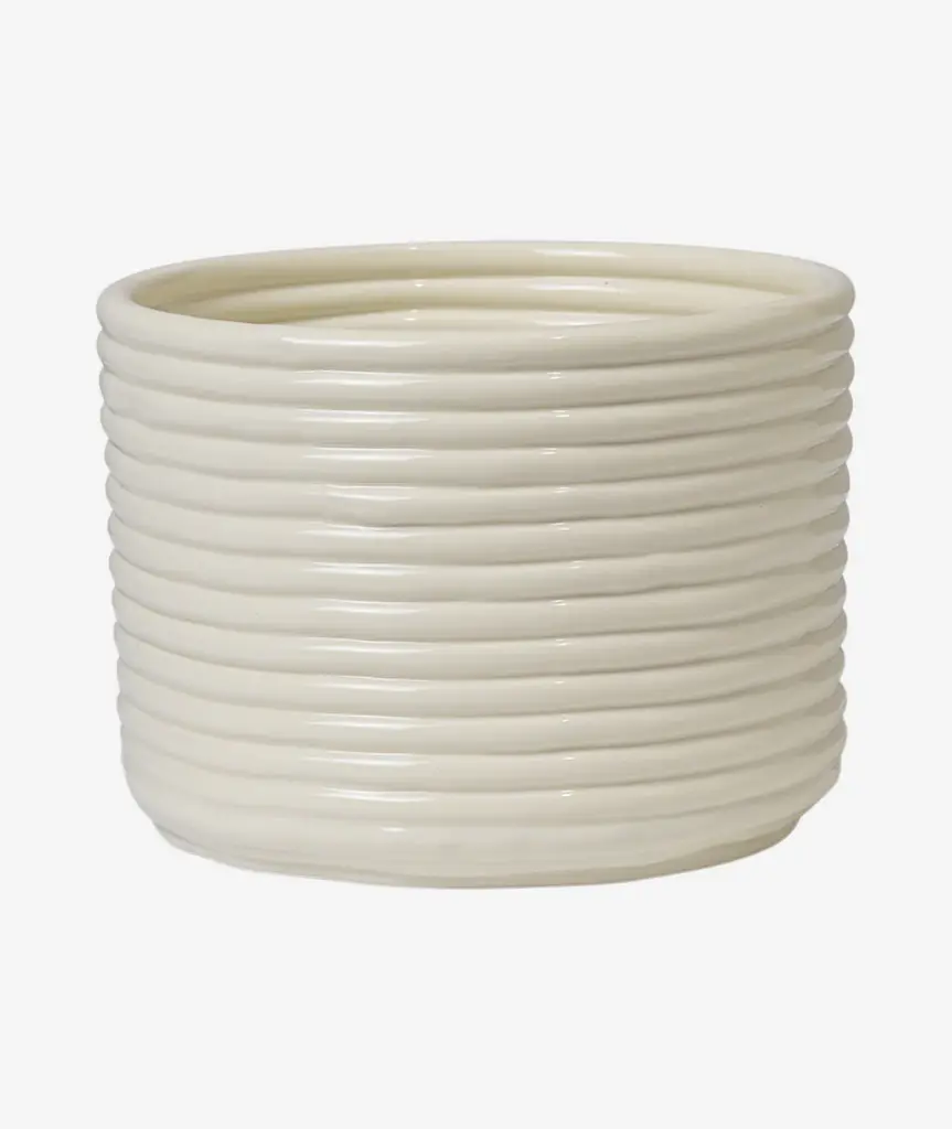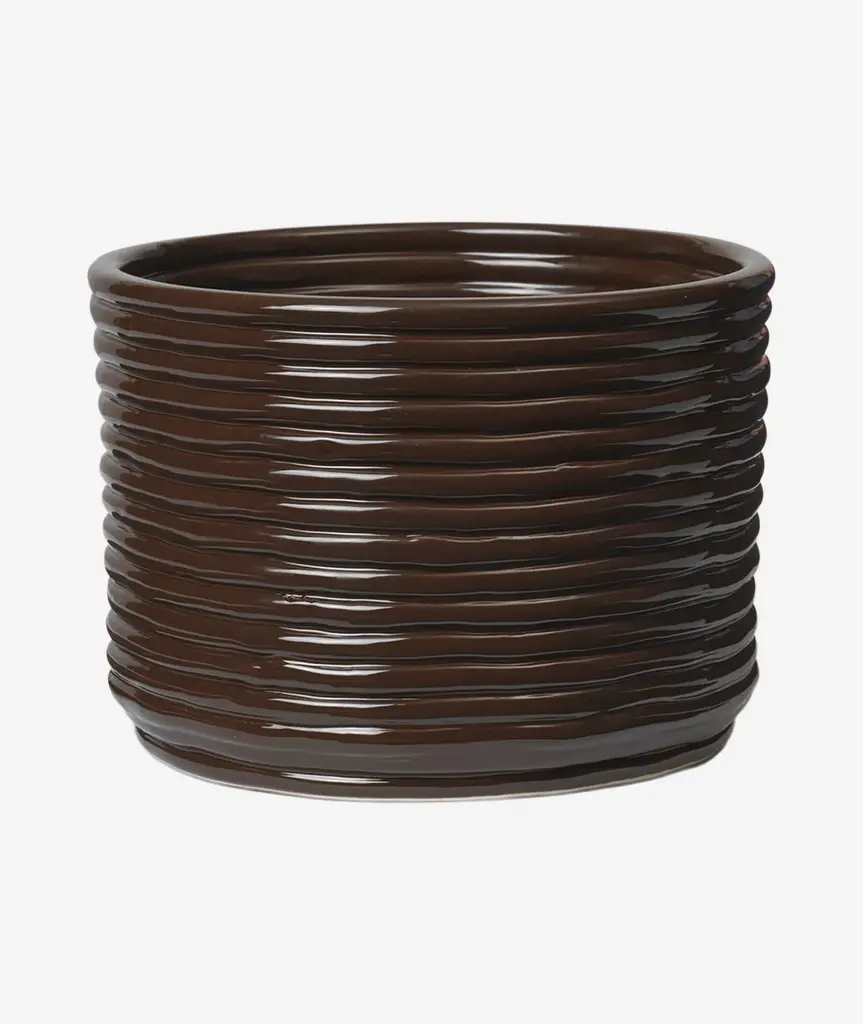Skillfully crafted from glazed ceramic, the Corduroy Pot brings an element of crafted charm into your living space. The pot is handcrafted from a continuous string of clay that has been meticulously rolled into a cylindrical form. This technique creates a unique texture that beautifully mimics the look of corduroy fabric. Available in various colors, the Corduroy Pot not only serves as a functional item but also as a conversation starter, making it a perfect addition to any home décor.