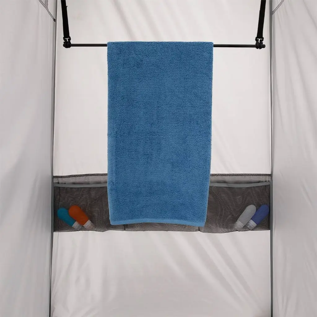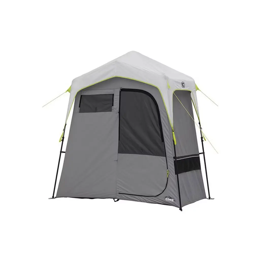 Head to the showers after a long day of exploring nature without the hassle of multiple poles to assemble. With the pre-attached steel pole frame, this two-room instant shower can be set up within 60 seconds. The CORE Instant Shower Tent with attached changing room includes a full mesh roof for optimal ventilation, turtle mesh flooring, a five gallon solar heater shower bag, a tri-folding PE sponge padded floor with a waterproof coating can be placed on the floor for added comfort, two towel bars, storage pockets, and a zipper lock for privacy.