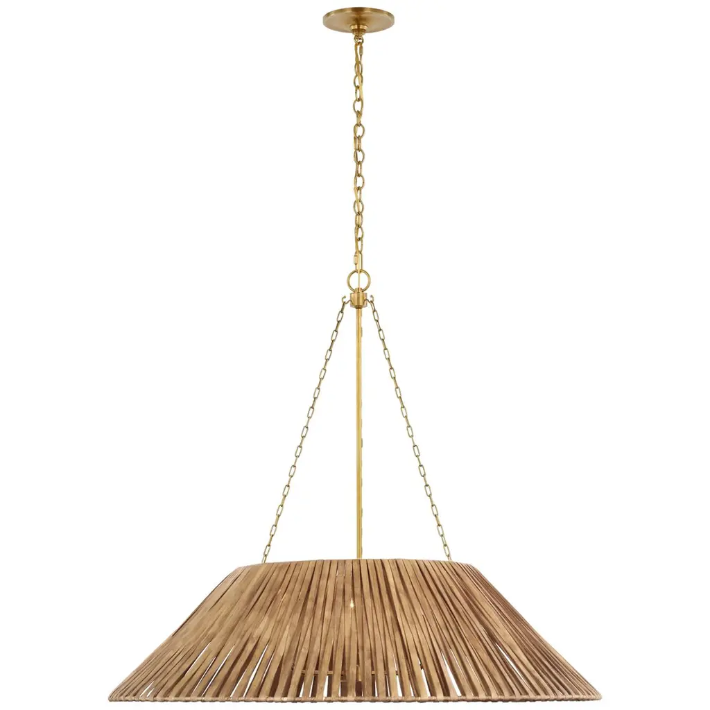 The wicker shade brings organic texture and tropical flair to the classic silhouette of this three-bulb lighting pendant.