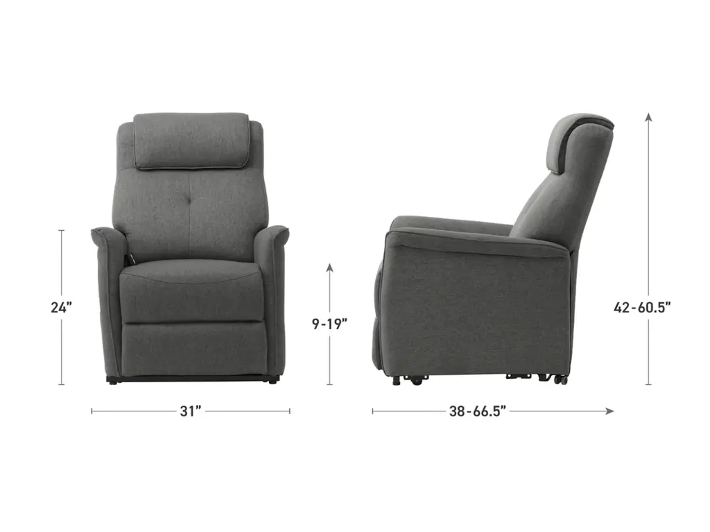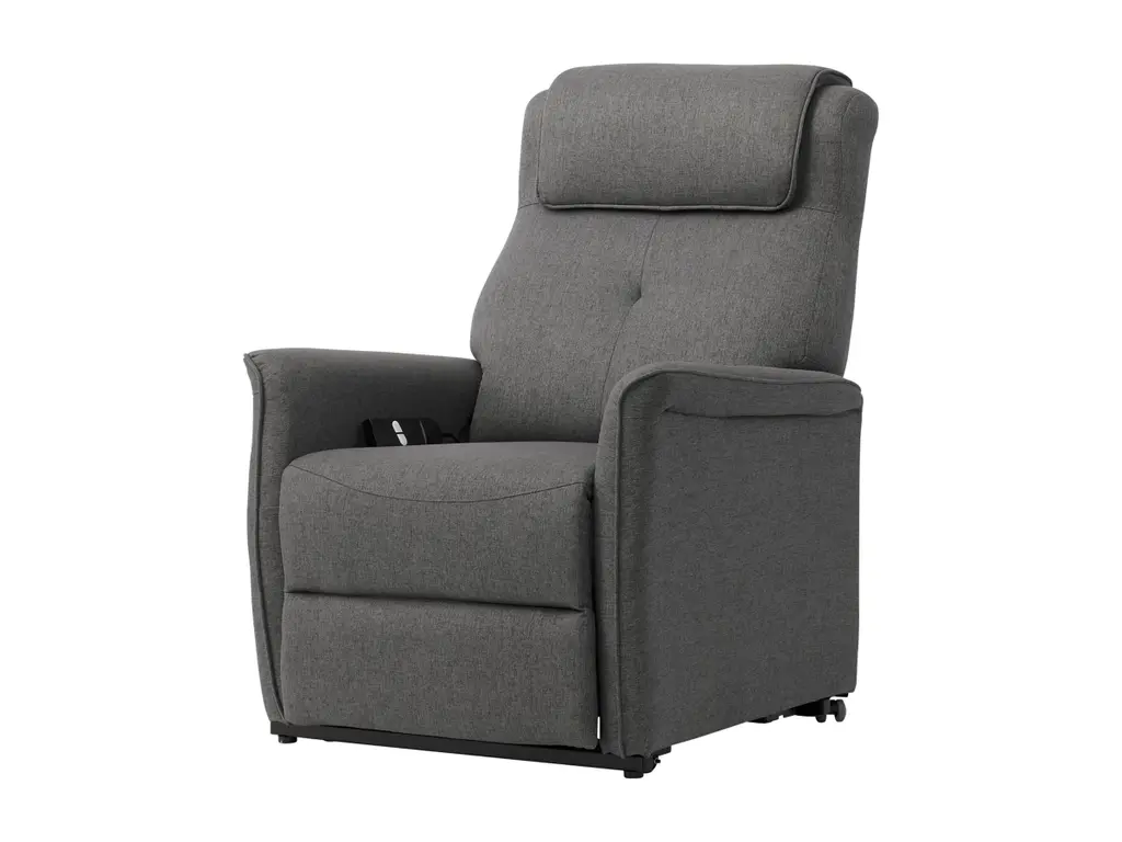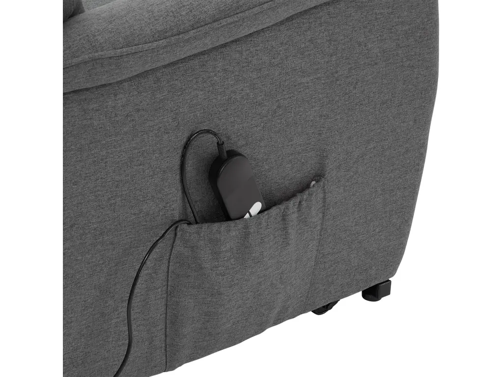 The Power Lift Recliner will keep you and your loved ones comfortable and supported. The high-quality foam seat cushions, backrest and lumbar support make this chair the perfect choice for reading, listening to music, watching TV or sleeping. Featuring a quiet motor and remote control that makes the power lift function easy to use and safe. The flared armrests and button tufting give the chair a stylish silhouette, while the side pocket provides a convenient place to store essential items nearby. Equipped with wheels for easy mobility, the Power Lift recliner has the perfect blend of style, comfort and contemporary features.