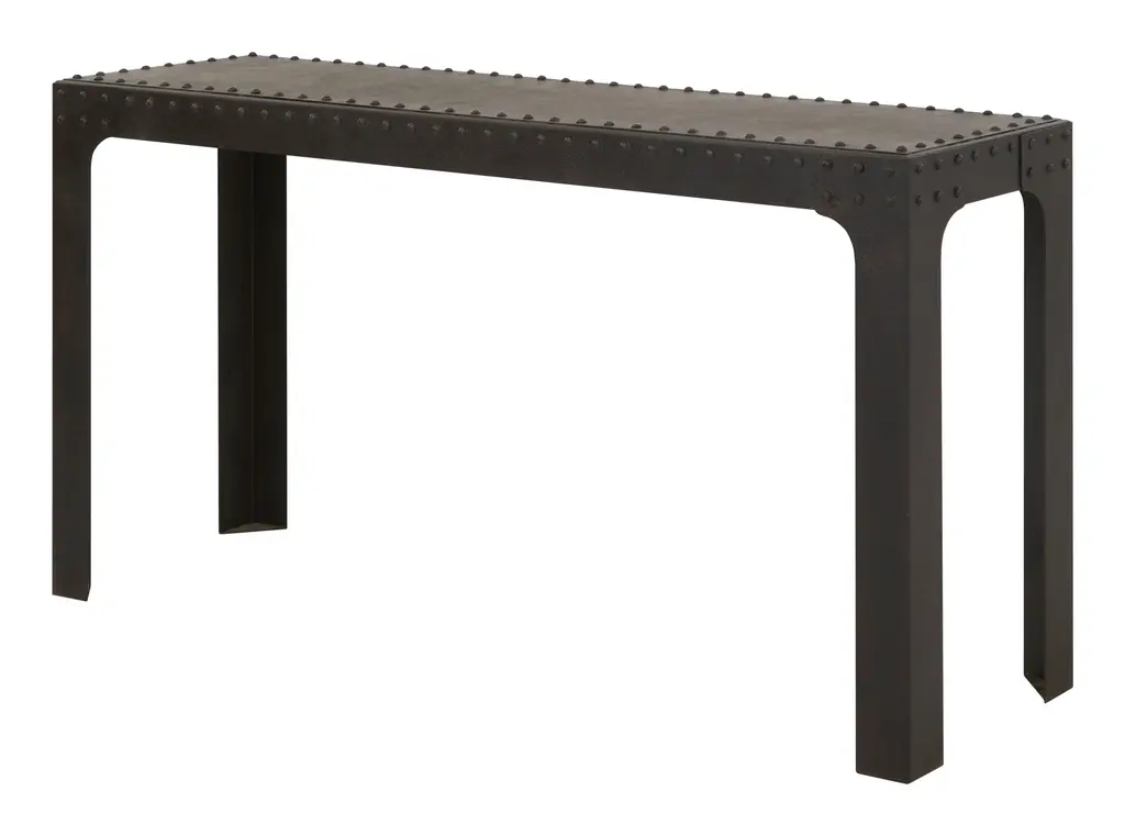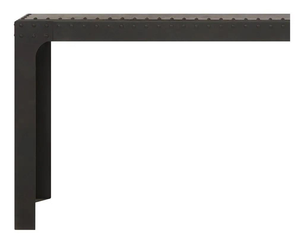 Nothing says industrial-chic like our Cormac Console. Simple and streamlined in design, this slim console table is completely crafted from black iron and finished with rows of rivets. Perfect for bringing a utilitarian touch to any modern space, we love Cormac adding a bit of edge to a living room or entryway. •iron Dimension•61"W x 17"D x 32"H