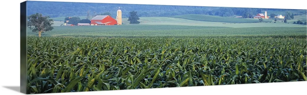 Corn crop in a field, Iowa County, Iowa wall art for home and office decor. Discover canvas art prints, photos, mural, big canvas art and framed wall art in GreatBigCanvas.com's varied collections.