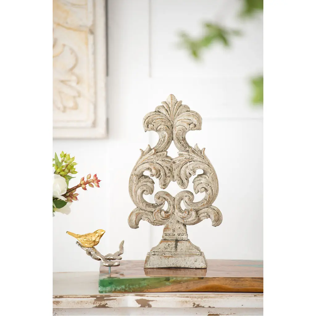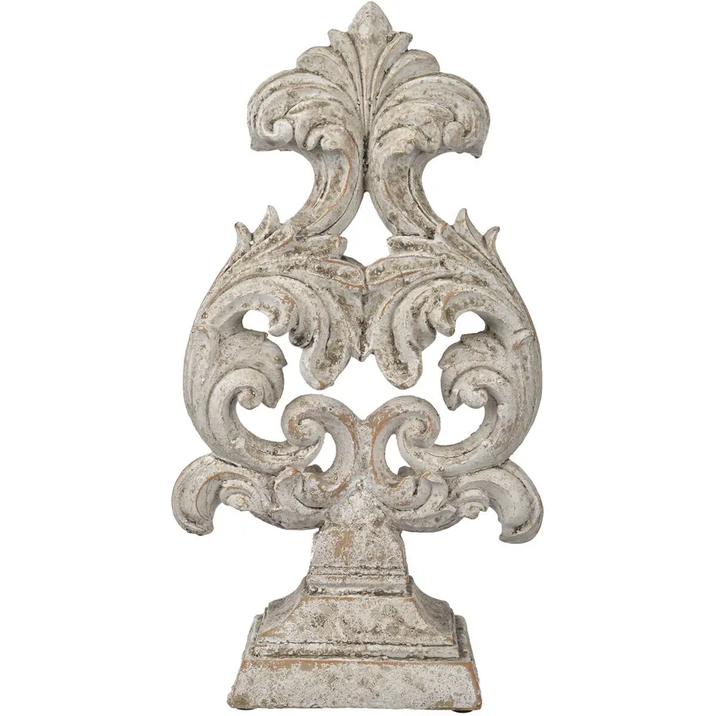 Featuring an aged white finish and elegant swirling shape, the Cornelius Sculptural Accent, Crested Arrow makes an ideal addition to regal spaces such as a formal dining room, master bedroom, or elegant sunroom. Constructed of cement and sand, this accent piece offers a rich texture and guaranteed durability.