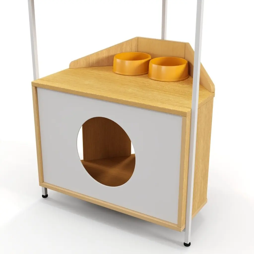 1. High-quality materials: Our cat cabinet furniture is made of high-quality P2 grade particle board and thickened metal frame to ensure durability and stability. It's perfect as a cat condo, feeding station or cat tree, providing a comfortable and safe space for your furry friends. 2.Multi-functional Design: Our cat furniture is designed to provide endless hours of fun and entertainment for your cats. With multiple layers, a scratching post, a cat ball, and a cat cabinet, it's a perfect all-in-one solution for your furry friends. Use it as a cat tree, cat tower, cat condo, or cat feeding station - the possibilities are endless!. 3.Space-Saving Corner Design: Our cat tree is designed to fit perfectly in a corner, making it an ideal space-saving solution for smaller homes or apartments. It allows you to provide your cats with a fun and comfortable space without taking up too much valuable floor space. 4.Enhanced Safety Features: Your cats' safety is our top priority, which is why our cat tree is equipped with non-slip mats on high-level layers and an anti-tip kit for the entire item. These features increase the stability and safety of the furniture for your cats and your family members. 5. Special appearance design: In order to make this cat tree blend well into your indoor space, we drew inspiration from furniture design and created a brand new cat tree. Different from ordinary carpet cat trees on the market, it can be very Nice decoration for your home.