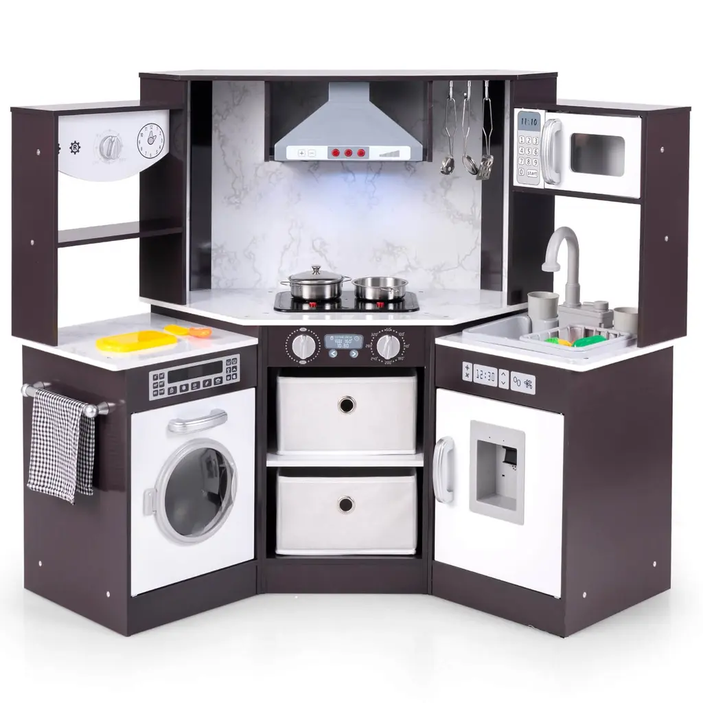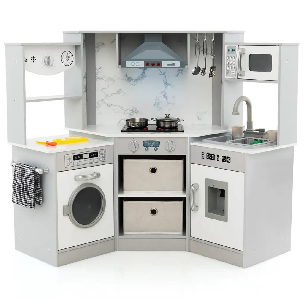 Corner Kids Kitchen Playset Wooden Toy Corner Kids Kitchen Playset - White