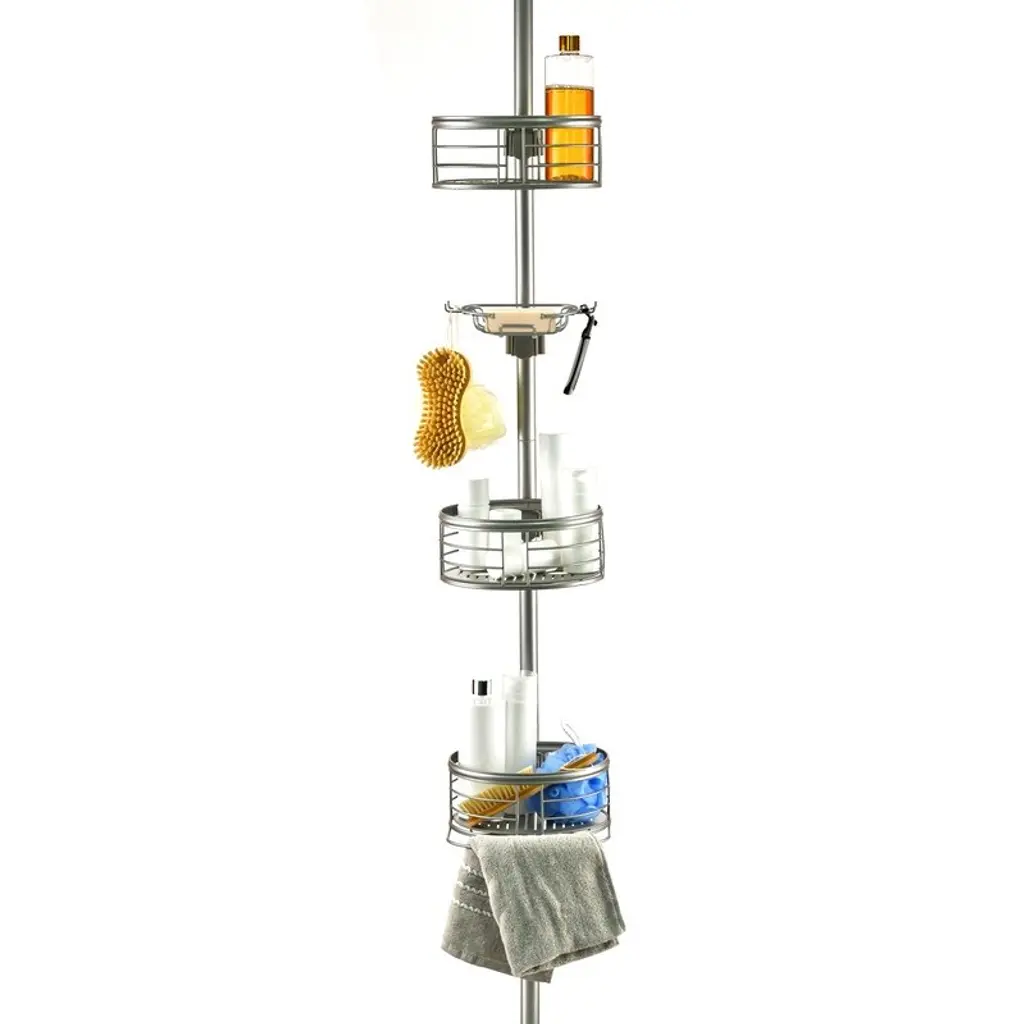 Corner Shower Basin Tension Bar, 4 Tier Adjustable Inner Shower Rack , Rustproof Stainless Steel Shower Basin 40-120 In. - Silver