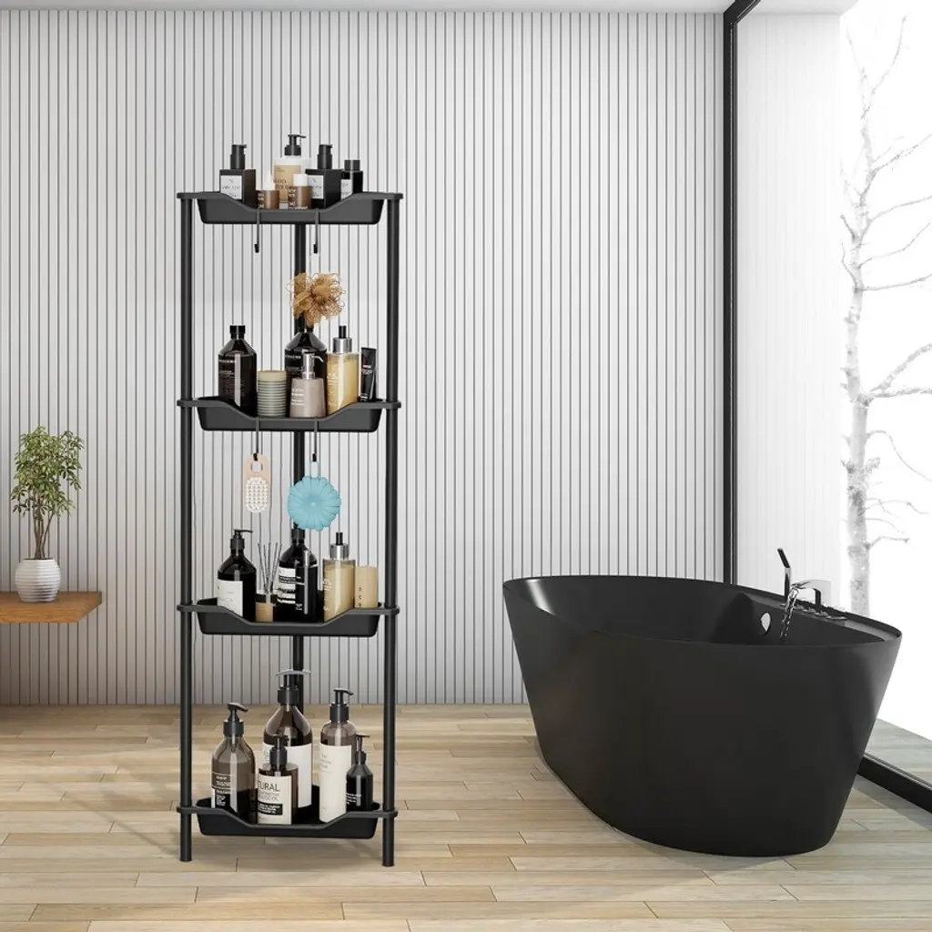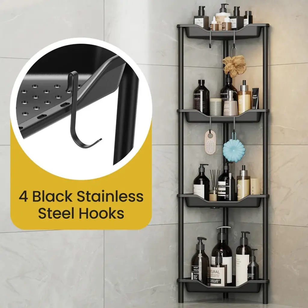 Corner Shower Caddy - 8.23"d X 14.17"w X 5.43"h - 8.23"d X 14.17"w X 5.43"h - Black-4 Tier