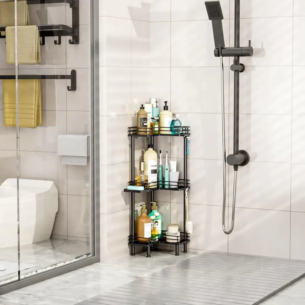 Corner Shower Caddy - 9.45"d X 4.72"w X 1.97"h - Black-3 Tier