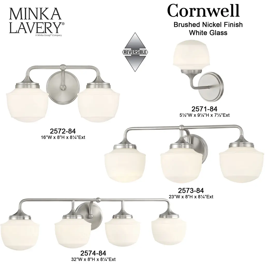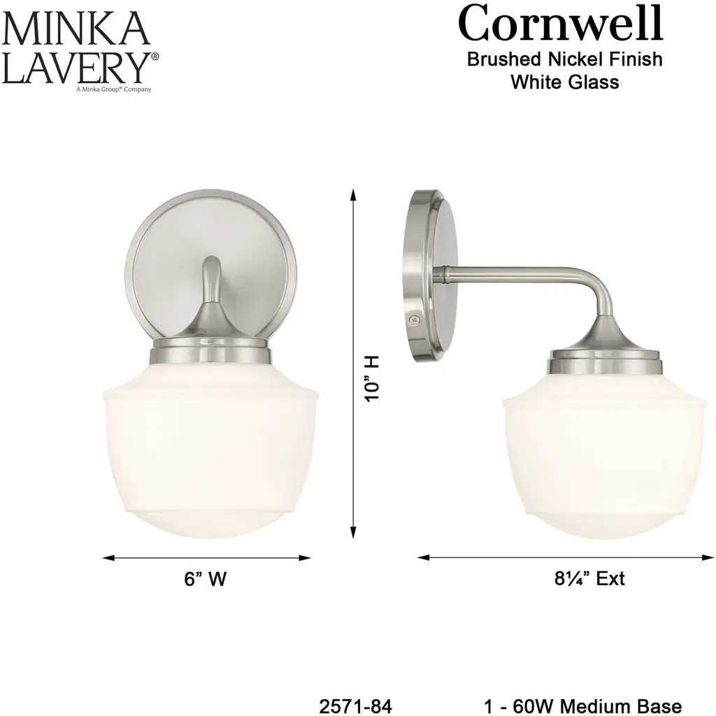 This 1 light Bath Vanity from the Cornwell collection by Minka-Lavery will enhance your home with a perfect mix of form and function. The features include a Brushed Nickel finish applied by experts. This item qualifies for free shipping!