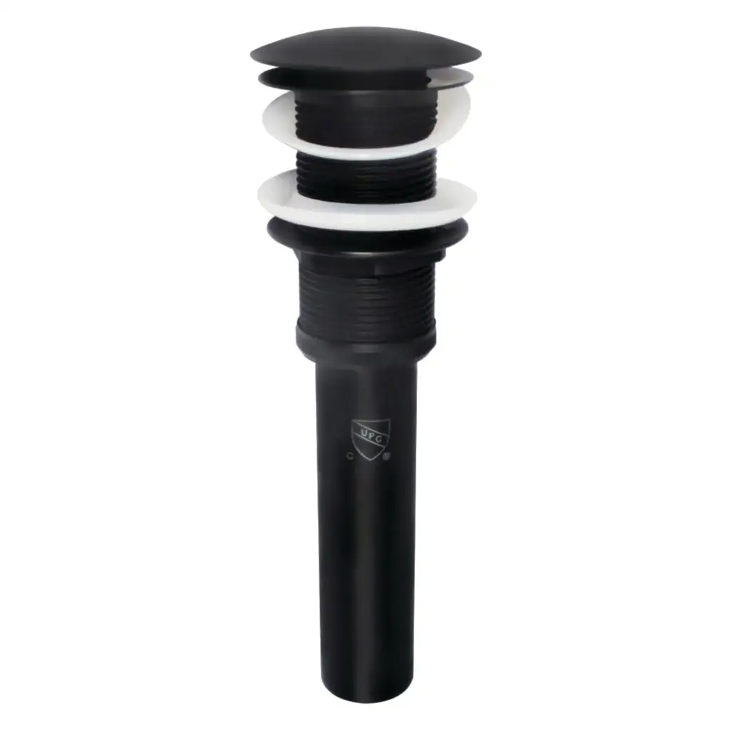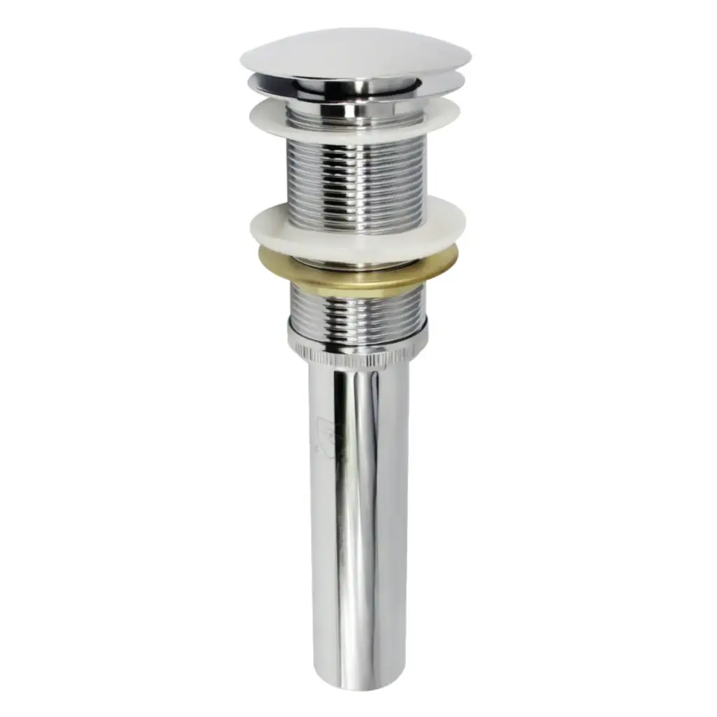 Push-up bathroom drains feature a spring mechanism to easily close and open the fixtures. Available in multiple finishes to match your faucet, the Coronet push pop-up bathroom sink drain without overflow will fit standard bathroom sink sizes. This drain assembly with large size of push button cap.FeaturesFabricated from solid brass material for durability and reliability1-1/4" O.D. tailpieceOverall size: (L) 2-5/8" x (W) 2-5/8" x (H) 8-7/8"Premium color finish resist tarnishing and corrosionFits standard 1-3/4" openingTrouble-free push button operationWithout overflow holeEasy installation save you time and effortDesigned for long-lasting durabilityMounting hardware includedProp 65 disclaimerWARNING: This product can expose you to chemicals, including lead which is known to the State of California to cause cancer or birth defects or other reproductive harm, for more information, go to www.p65warnings.ca.gov