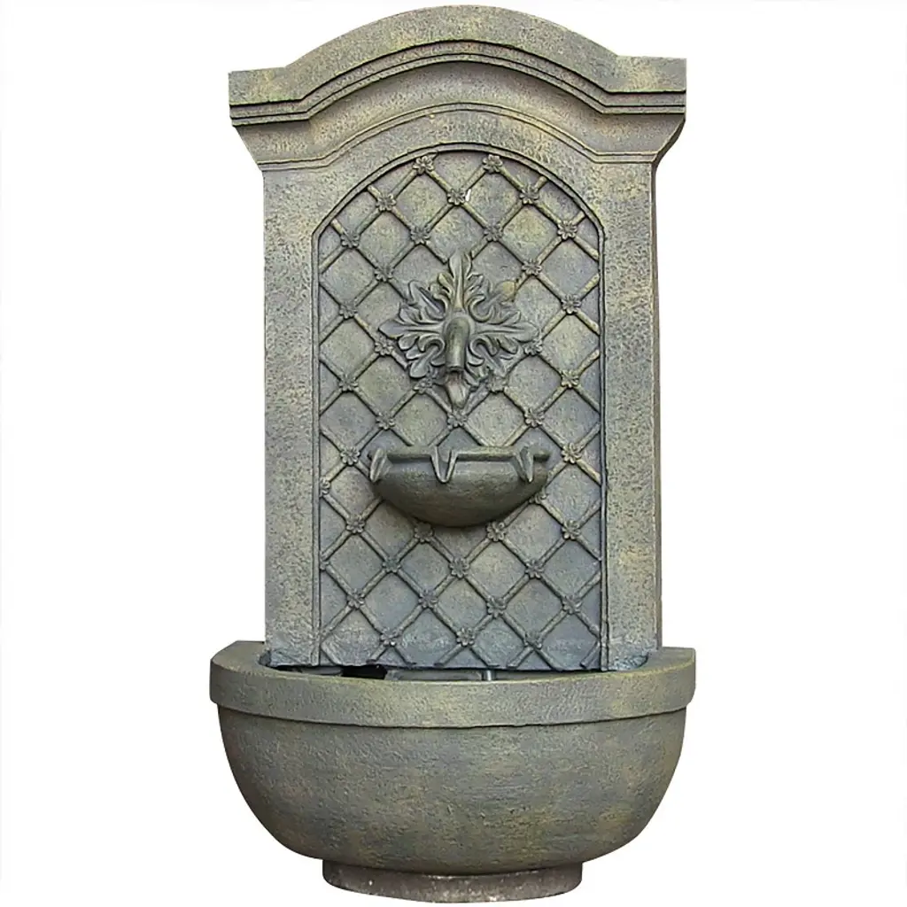 The classically inspired Corsini Water Fountain is as elegant as those found in quiet European courtyards. This handcrafted fountain is a work of art, with a peaceful stream of water cascading from the eloquently embossed back. Ideal for tighter spaces, the fountain sits almost flush against a garden or patio wall. Handcast from premium-quality stone Aged limestone finish is hand applied Self-contained water fountain Circulating pump included 120V Assembly required Made in USA. At Frontgate, our primary focus is quality. We guarantee that every product we sell will stand up to the supreme test – our customers' satisfaction. To learn more about our policies, visit our Shipping & Processing, Returns & Exchanges and Warranty & Price Guarantee pages.