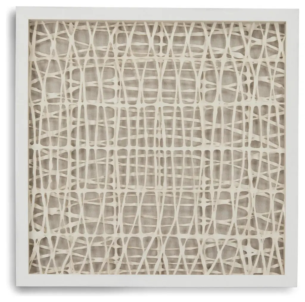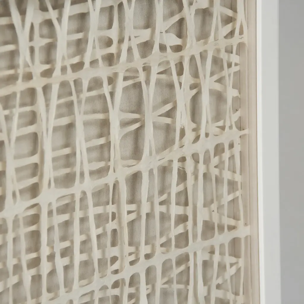 Add an eye-catching accent piece to your wall using the Cortland Frame. Set inside a white fir wood frame, this unique piece features an abstract paper art design in an open weave pattern. Hang it in a contemporary office or bedroom as a striking focal piece.