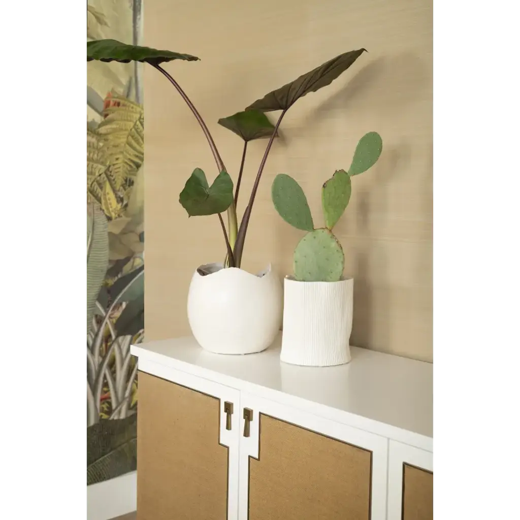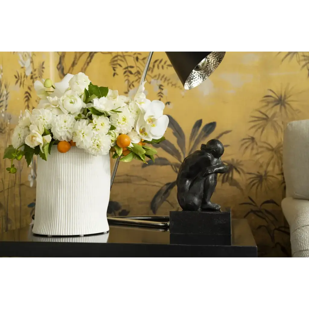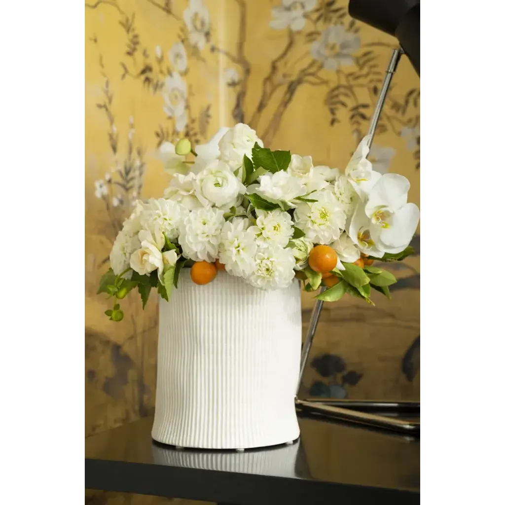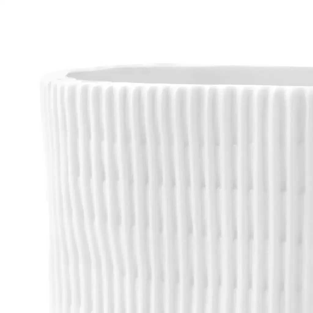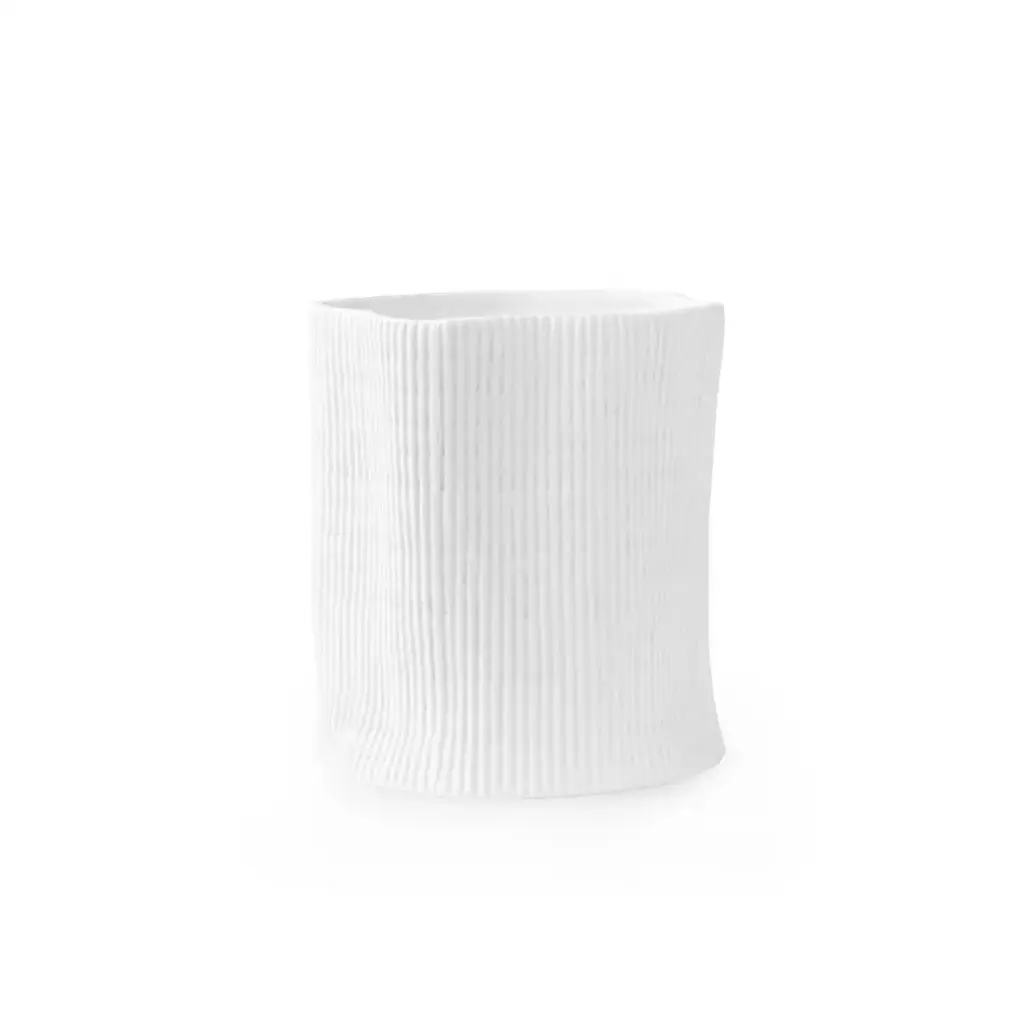 The Corum cache pot or hold-all is made of Blanc de Chine Porcelain. Inspired by corrugated cardboard, our artisans are playing with the concept of taking inspirational from ordinary materials and creating objet d'art. The Corum is glazed inside and matte outside. It is unmistakably modern and minimal serving as a statement piece as well as a convenient container for orchids, or those small things that often go missing.