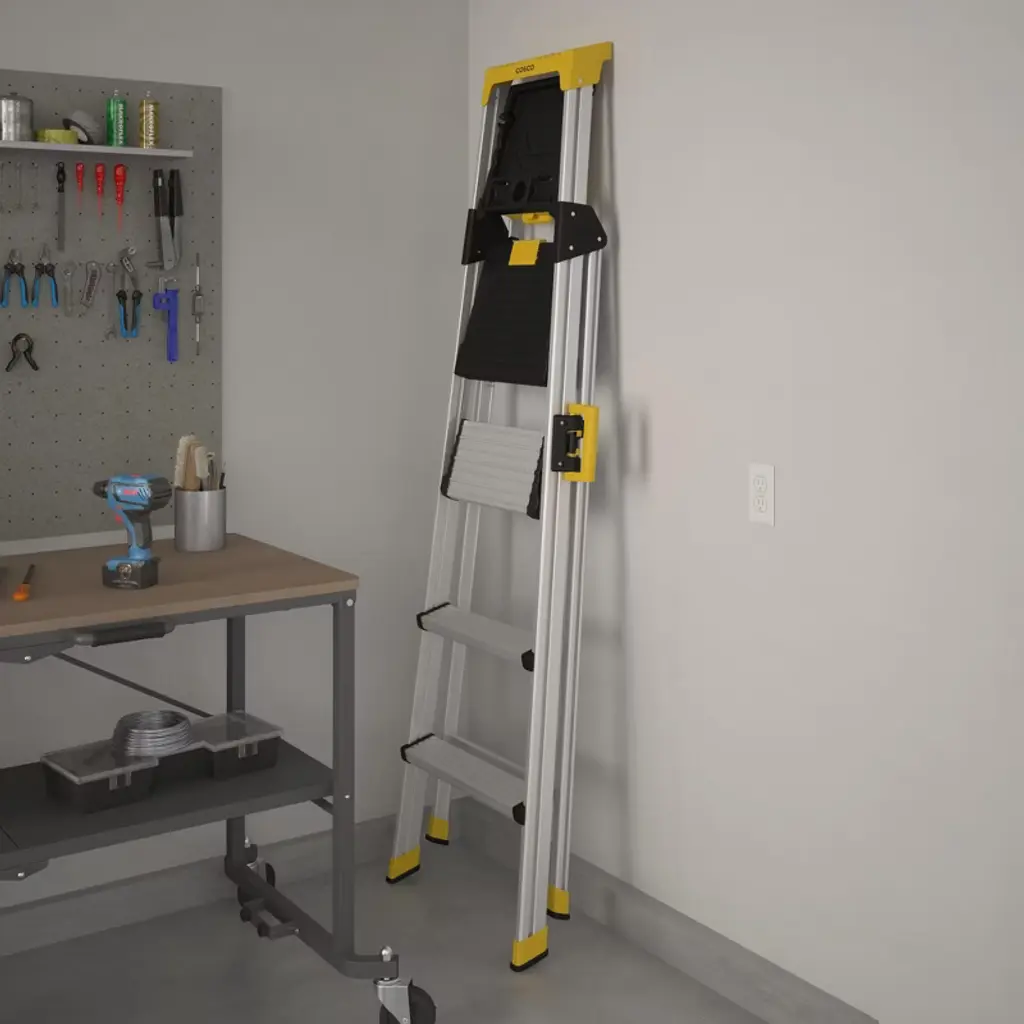 COSCO 6ft ladder is the only ladder you'll need! Featuring a patented aluminum boxed frame design and two project trays to hold your tools right where you need them. The Signature Series Premium 6ft Aluminum Step Ladder features a lightweight aluminum design and provides a safe, larger work space with a large platform top step and aluminum second step. In addition to it's strong and secure structure this ladder offers an additional appeal with a pop of color! Who said your honey-do list had to look boring?