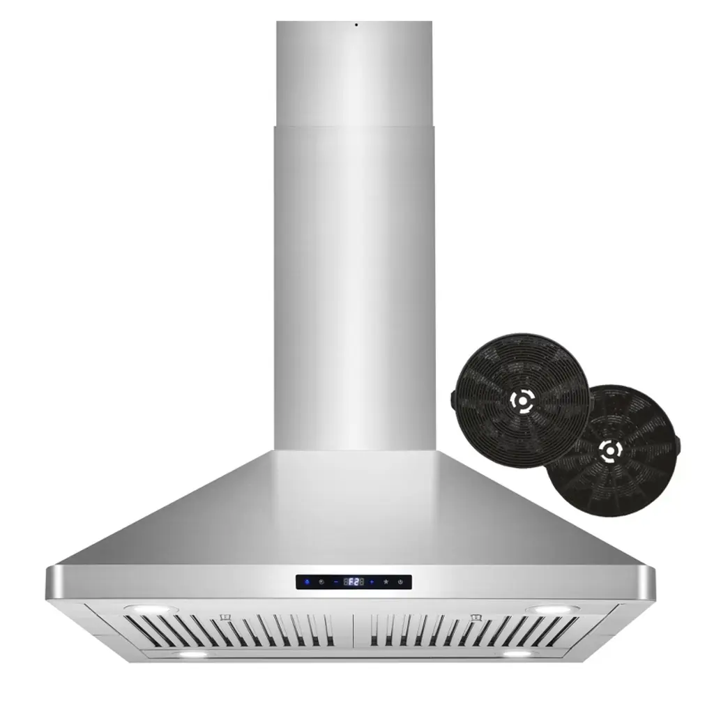 Cosmo's 36 in. ductless Island Range Hood is in a class of its own. Coveted by kitchen design experts for its sophistication and ultra-modern aesthetic that seamlessly complements a variety of kitchen designs. The 63ISS90-DL Island Range Hood includes modern features like an efficient 380 CFM centrifugal motor, soft touch digital controls to operate the 3-speed fan, and Cosmo ARC-FLOW permanent filters that are dishwasher-safe and trap grease and oil better than any other filter. 4 x 2W LED lighting will illuminate your cooktop. Includes a 3-prong power plug for easy use. Part of the Lumin Collection bringing enhanced functionality and design, offering a well-rounded option for those looking for more convenience and style in an appliance. • The Lumin Collection brings enhanced functionality and design, offering a well-rounded option for those looking for more convenience and style in an appliance • Ductless island range hood with efficient airflow and ultra-quiet design • Easy-to-use digital touch controls with timer and clock • Choose from 3 fan speeds including high, medium, and low to suit a variety of cooking styles; with 380 CFM of suction, worry less about having enough ventilation and cook the way you want • Noise level as low as 45 dB on lowest fan speed with rigid ducting (sold separately) under optimal conditions • Cosmo ARC-FLOW Permanent Filters are dishwasher-safe and extremely durable; no need to replace these filters, simply drop them in the dishwasher for easy maintenance • Carbon filter kit lasts up to 6 months depending on use, replacements available for optimum performance (Purchase Part # CKF1-TM) for ductless operation • Wall mount range hood is made of premium 430-grade stainless steel, 20-Gauge thickness • 2 years limited parts warranty, this product is quality and safety inspected • Island range hood exhaust opening uses 6 in. round duct • 3-prong power plug • ETL Listed: ETL Listed products demonstrate compliance to North American safety standards published by relevant NRTLs (Nationally Recognized Testing Laboratories)