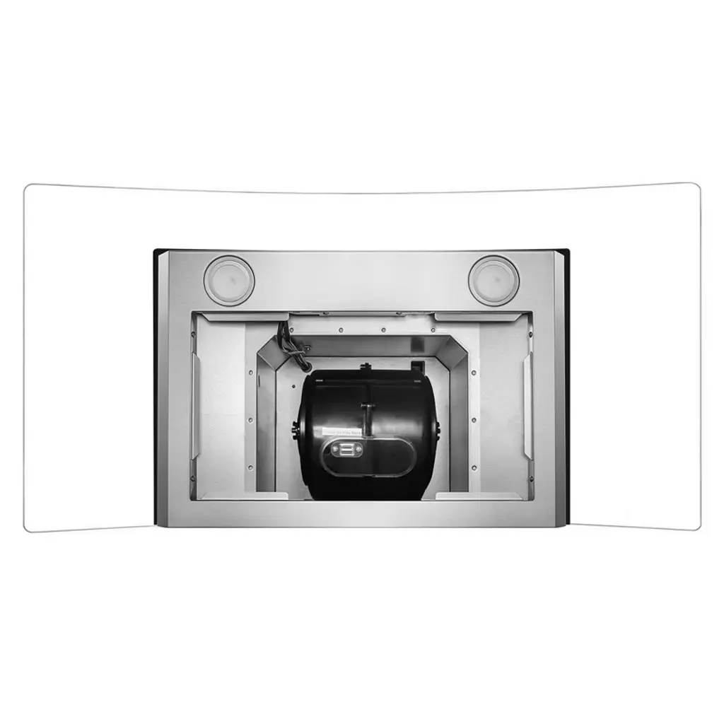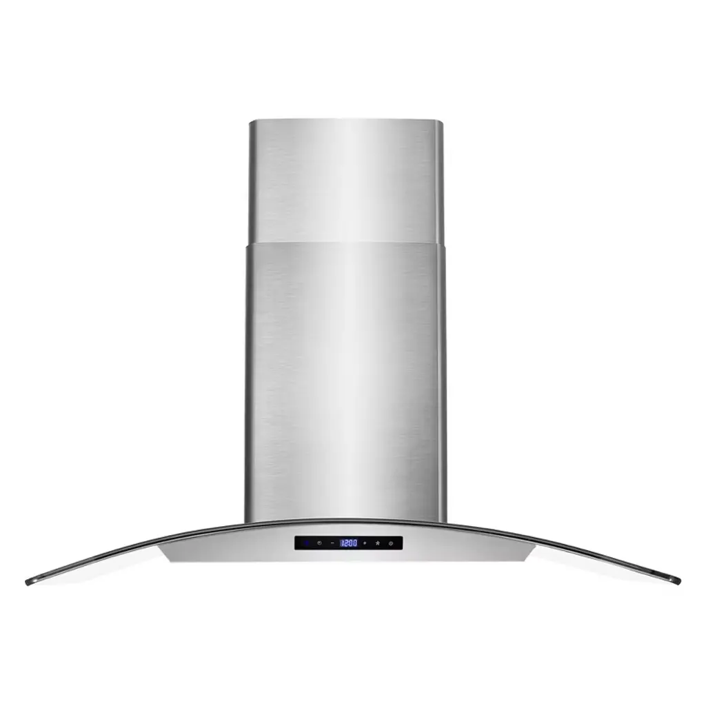 Elevate your kitchen decor to new heights. Cosmo’s COS-668AS900 wall mount range hood features a stainless steel body with a tempered glass visor. Heavy duty stainless steel permanent filters are dishwasher-safe for easy clean-up. 380 cu. ft. per minute suction traps smoke and fumes from disturbing your home. This wall mount range hoods glass visor also captures smoke and steam, ensuring it doesn’t escape into your home. LED lighting is available for added visibility. Touch controls make using our wall mount range hood easy. Part of the Vista Collection bringing enhanced functionality and design, offering a well-rounded option for those looking for more convenience and style in an appliance. • The Vista Collection brings enhanced functionality and design, offering a well-rounded option for those looking for more convenience and style in an appliance • Touch controls make operating our range hood easy. Both the fans and lights can be controlled with just a tap of a finger • 3 fan speeds to adjust to your needs, choose from high, medium and low suction to suit a variety of foods and cooking • Noise level as low as 50 dB on lowest fan speed with rigid ducting (sold separately) under optimal conditions; range hood comes with flexible ducting for convenient installation • Energy efficient 2-Watt LED lights helps illuminate your cooktop surface for added visibility, mounted directly below the wall mount range hood, cook and see better in the dark • Cosmo ARC-FLOW permanent filters are constructed of high quality stainless steel to effectively capture grease and cooking odors and keep the air clean. Our ARC-FLOW permanent filters are dishwasher-safe and extremely durable. No need to replace these filters, simply drop them in the dishwasher for easy maintenance • 2 years limited warranty, trust our wall mount range hood to deliver years of trouble-free use • Wall mount range hood with telescoping chimney makes it suitable for ceilings 7.5 ft. to 8.5 ft. in height • Range hood can be converted to recirculating/ductless operation with optional purchase of Carbon Filter Kit # CFK1-TM (sold separately) • Wall mount range hood exhaust opening uses 6 in. round duct. Backdraft damper is included to prevent air coming back inside • Wall mount range hood is made of premium 430 grade stainless steel, 20-Gauge thickness • ETL Listed: ETL Listed products demonstrate compliance to North American safety standards published by relevant NRTLs (Nationally Recognized Testing Laboratories)