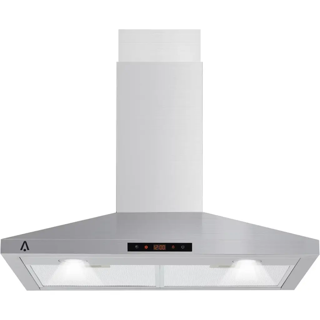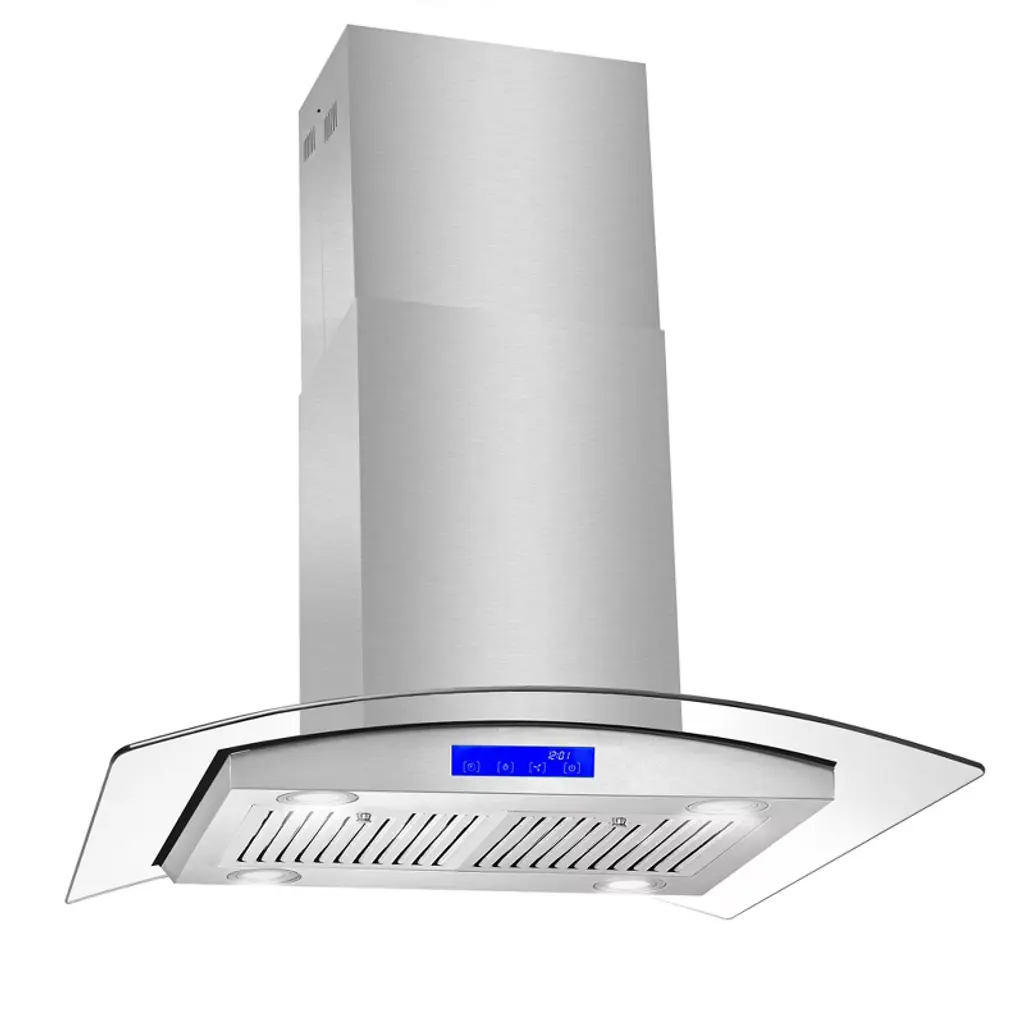 Cosmo presents a beautiful Italian-style designer range hood that’s truly in a class of its own. With details like a sleek brushed stainless steel body and a tempered glass visor, this island range hood is coveted by kitchen design experts for its sophisticated, ultra-modern aesthetic. This island range hood brings modern features into your kitchen, with high-lumen LED lighting, digital touch controls, including 3 fan speeds, a clock and timer, and an efficient 380 CFM motor that pulls lingering grease and odors from your house with ease. Premium stainless steel ARC-FLOW permanent filters make maintenance a breeze, simply drop the filters in the dishwasher, no replacement required. Part of the Lumin Collection bringing enhanced functionality and design, offering a well-rounded option for those looking for more convenience and style in an appliance. • The Lumin Collection brings enhanced functionality and design, offering a well-rounded option for those looking for more convenience and style in an appliance • Island range hood with ultra-quiet design and glass visor • Easy-to-use digital touch controls with timer and clock • Choose from 3 fan speeds from high, medium and low to suit a variety of cooking styles • Handle multiple pots, pans and burners with ease with 380CFM of suction- enough to take care of steam, grease and smoke from even the largest meals • Noise level as low as 45 dB on lowest fan speed with rigid ducting (sold separately) under optimal conditions; range hood comes with flexible ducting for convenient installation • 4 LED lights mounted below the island range hood helps illuminate the cooktop surface with bright white light • Cosmo ARC-FLOW permanent filters are constructed of high quality stainless steel to effectively capture grease and cooking odors and keep the air clean. Our ARC-FLOW permanent filters are dishwasher-safe and extremely durable; no need to replace these filters, simply drop them in the dishwasher for easy maintenance • Island range hood exhaust opening uses 6 in. round duct. A backdraft damper is included to prevent air coming back inside • Island range hood is made of premium 430 grade, 20 Gauge stainless steel • Convertible to ductless operation with Carbon Filter Kit # CFK1-TM (sold separately) • ETL Listed: ETL Listed products demonstrate compliance to North American safety standards published by relevant NRTLs (Nationally Recognized Testing Laboratories)