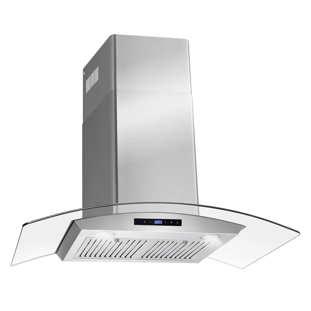Cosmo's COS-668WRCS90-DL combines curved glass and stainless steel perfect for any modern kitchen. The flowing designs of our ductless 36 wall mount range hood come with a 380 CFM centrifugal motor that traps smoke and fumes from lingering in your home. Cosmo Range Hoods include ARC-FLOW Permanent Filters, the only filters that provide greater airflow and are dishwasher-safe for easy clean-up. Soft touch digital controls manage multiple functions, including 3 fan speeds and LED lighting for added visibility. This ductless range hood includes a 3-prong power plug for easy use. Part of the Vista Collection bringing enhanced functionality and design, offering a well-rounded option for those looking for more convenience and style in an appliance. • The Vista Collection brings enhanced functionality and design, offering a well-rounded option for those looking for more convenience and style in an appliance • Touch controls make operating our range hood easy. Both the fans and lights can be controlled with just a tap of a finger • 3 fan speeds to adjust to your needs, choose from high, medium and low suction to suit a variety of foods and cooking • Noise level as low as 50 dB on lowest fan speed with rigid ducting (sold separately) under optimal conditions • Energy efficient 2-Watt LED lights helps illuminate your cooktop surface for added visibility, mounted directly below the wall mount range hood, cook and see better in the dark • Cosmo ARC-FLOW permanent filters are constructed of high quality stainless steel to effectively capture grease and cooking odors and keep the air clean. Our ARC-FLOW permanent filters are dishwasher-safe and extremely durable. No need to replace these filters, simply drop them in the dishwasher for easy maintenance • 2 years limited warranty, trust our wall mount range hood to deliver years of trouble-free use • Wall mount range hood with telescoping chimney makes it suitable for ceilings 7.5 ft. to 8.5 ft. in height • Range hood converts to recirculating/ductless operation with Carbon Filter Kit # CFK1-TM • Wall mount range hood exhaust opening uses 6 in. round duct. Backdraft damper is included to prevent air coming back inside • Wall mount range hood is made of premium 430 grade stainless steel, 20-Gauge thickness • ETL Listed: ETL Listed products demonstrate compliance to North American safety standards published by relevant NRTLs (Nationally Recognized Testing Laboratories)