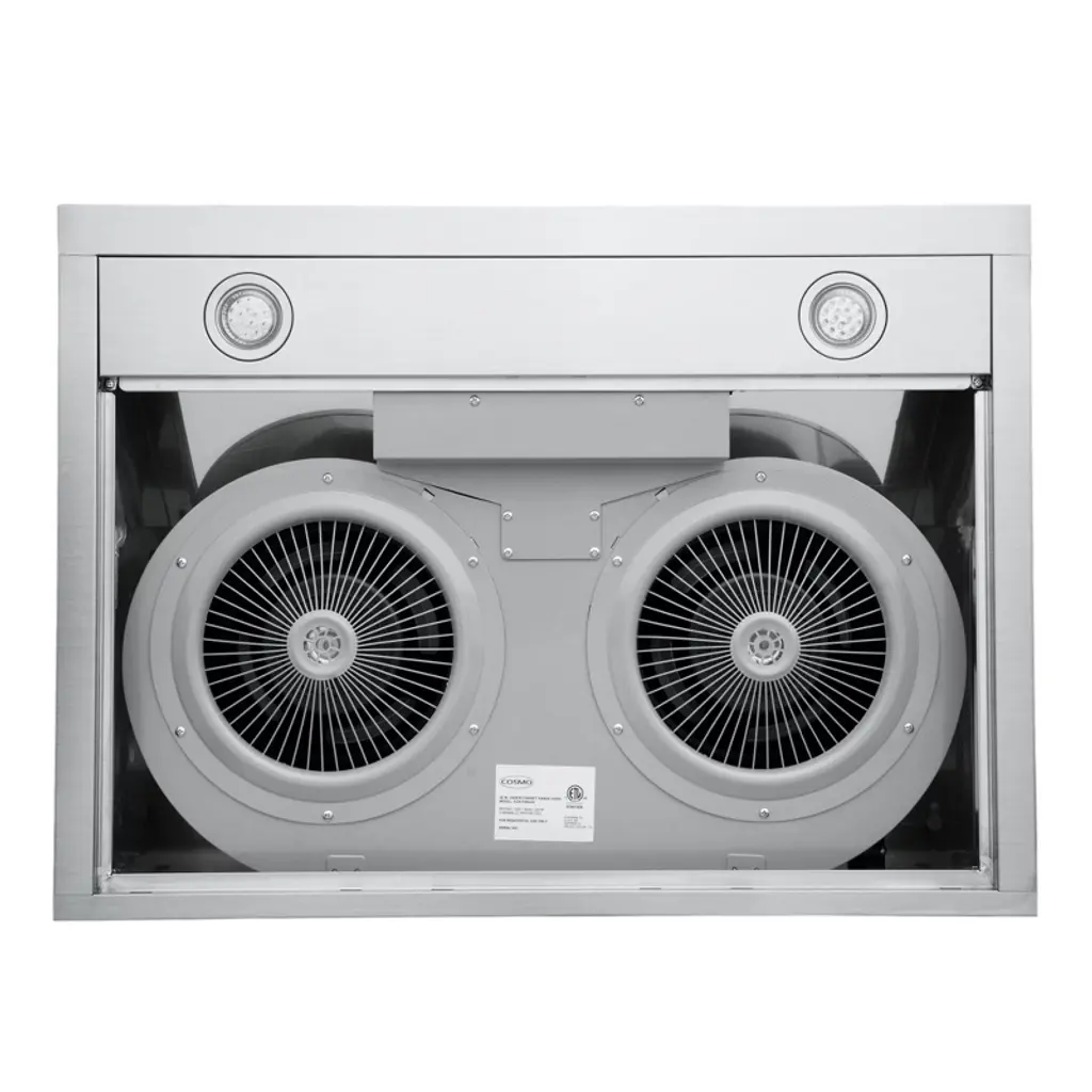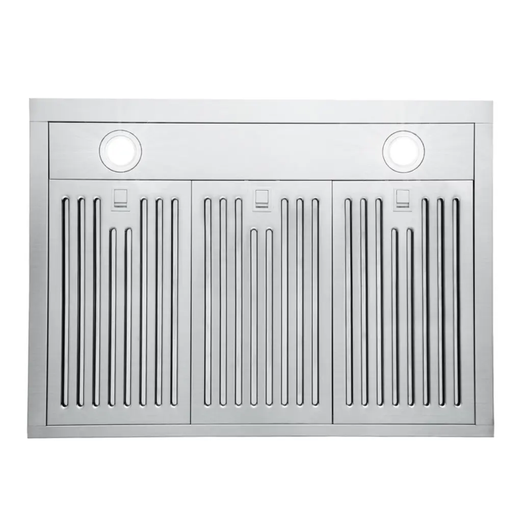Upgrade your kitchen with Cosmo’s COS-KS6U30 under cabinet range hood for a modern and minimalist design. Fits easily into existing cabinetry with a premium brushed stainless steel construction. Efficiently trap grease and cooking odors with 3 fan speeds, controlled by a digital soft touch control panel. Illuminate your kitchen with the built-in energy efficient LED lights for easier visibility. Clean up is a breeze with easily removable, permanent, dishwasher-safe stainless steel filters. Save money year-round with unlimited uses on these filters. A 3-prong power cord is included for easy installation. Trust Cosmo for professional quality in your home at factory-direct prices. Part of the Haven Collection bringing enhanced functionality and design, offering a well-rounded option for those looking for more convenience and style in an appliance. • The Haven Collection brings enhanced functionality and design, offering a well-rounded option for those looking for more convenience and style in an appliance • Ultra-quiet design with under cabinet range hood mounting • Easy-to-use digital soft touch controls • 3 fan speeds adjust to your needs, choose from high, medium, and low suction to suit a variety of foods and cooking • 500 CFM airflow capacity provides efficient performance • Noise level as low as 45 dB on lowest fan speed with rigid ducting (sold separately) under optimal conditions; range hood comes with flexible ducting for convenient installation • Includes wireless remote to make adjustments from afar • Two 1.5-Watt energy efficient LED lights help illuminate the cooktop surface for added visibility, mounted directly below the range hood • Cosmo ARC-FLOW permanent filters are constructed of high-quality stainless steel to effectively capture grease and cooking odors; our ARC-FLOW permanent filters are dishwasher-safe and extremely durable; no need to replace these filters, simply drop them in the dishwasher for easy maintenance • 2-year limited warranty, trust our under cabinet range hood will provide years of trouble-free use • Range hood exhaust rectangular or round (top of unit only); includes a rear exhaust option (rectangular only); only round duct included with range hood • Made of premium 430-grade stainless steel, 18-Gauge thickness to add a refined touch and upgrade a kitchen's ambiance • 3-prong power cord included for easy installation • ETL Listed: ETL Listed products demonstrate compliance to North American safety standards published by relevant NRTLs (Nationally Recognized Testing Laboratories)