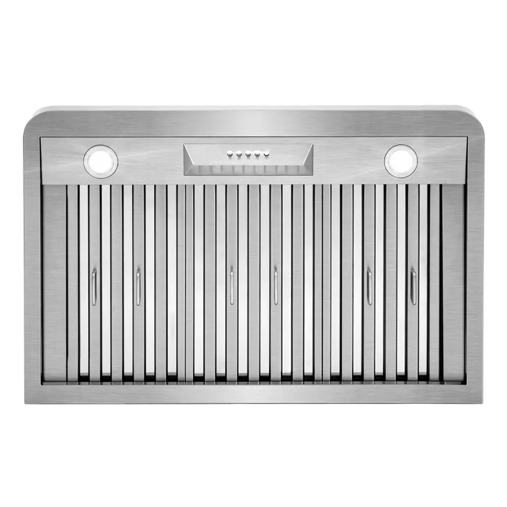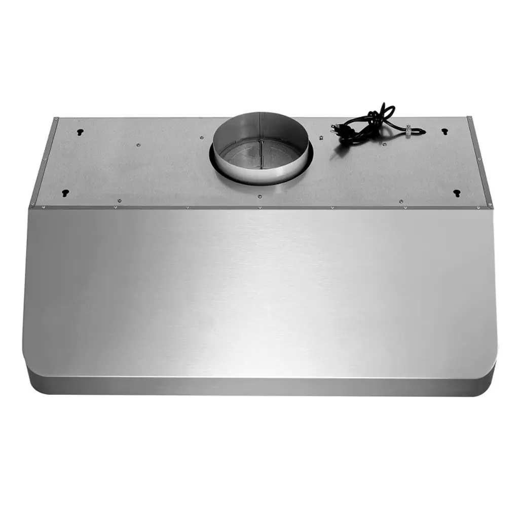 Cosmo presents a professional caliber under cabinet range hood that adds bold, distinct flair to your kitchen. This 36 inch range hood fits easily under an existing cabinet, and has premium brushed stainless steel that matches seamlessly with existing kitchen appliances for a modern upscale look. Our under cabinet range hood features 500 CFM high-efficiency motors with premium stainless steel baffle filters to trap grease and oil. This COS-QB90 model is both energy efficient and quiet, utilizing bright white LED lighting for year-round cost savings. Our permanent filters will save you money year after year and are dishwasher-safe for added convenience. Trust Cosmo for premium quality kitchen appliances at factory direct prices. Part of the Haven Collection bringing enhanced functionality and design, offering a well-rounded option for those looking for more convenience and style in an appliance. • The Haven Collection brings enhanced functionality and design, offering a well-rounded option for those looking for more convenience and style in an appliance • Ultra-quiet design range hood with under cabinet mounting • Push button controls that operate the fan and lights are integrated seamlessly with the range hood design in sleek stainless steel • 3 fan speeds to adjust to your needs: choose from high, medium and low suction to suit a variety of foods and cooking • Handle multiple pots, pans and burners with ease with 500 CFM of suction- enough to take care of steam, grease and smoke from even the largest meals • Noise level as low as 40 dB on lowest fan speed with rigid ducting (sold separately) under optimal conditions; range hood comes with flexible ducting for convenient installation • Two bright white LED lights help illuminate the cooktop surface • Cosmo ARC FLOW permanent filters are constructed of high quality stainless steel to effectively capture grease and cooking odors and keep the air clean. Our permanent filters are dishwasher-safe and extremely durable. • Under cabinet range hood is made of premium 430 grade stainless steel, 18-Gauge thickness • 8 in. round duct exhaust opening, backdraft damper is included with under cabinet range hood to prevent air coming back inside • Convertible to ductless operation with Carbon Filter Kit CFK5 (sold separately) • ETL Listed: ETL Listed products demonstrate compliance to North American safety standards published by relevant NRTLs (Nationally Recognized Testing Laboratories)