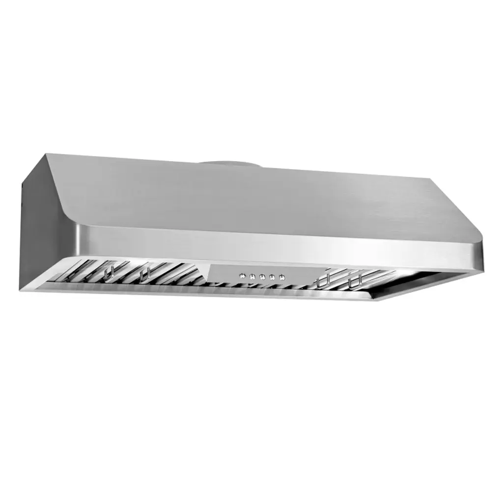 Cosmo Cos-qb90 36 In. Haven Collection 500 Cfm Ducted Under Cabinet Range Hood, Button Control, Led Lights, Stainless Steel
