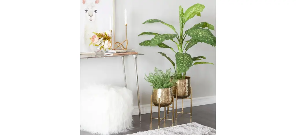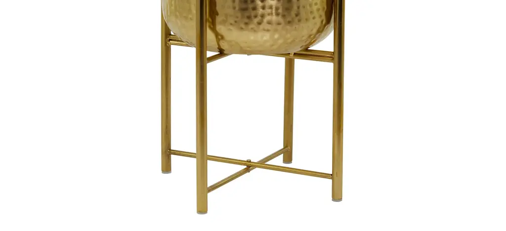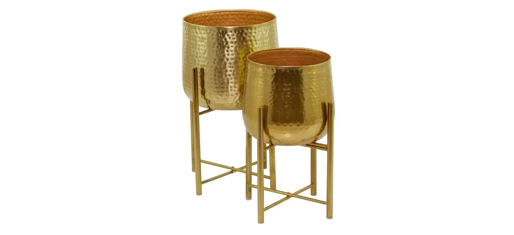 The CosmoLiving Carothers Planter Set of 2 brings tranquility to your space and adds bundles of charm to your home. A smart chic style inspired living space knows how important mixing and matching is, especially when it comes to adding some greenery in your space. Enhance the mood and the look of your room with some plants in this beautifully designed planter. The metal pots of these accent pieces are securely mounted on metal stands that provide stability with its x-shaped supports. Suitable for indoor use. Planters do not have drainage holes.