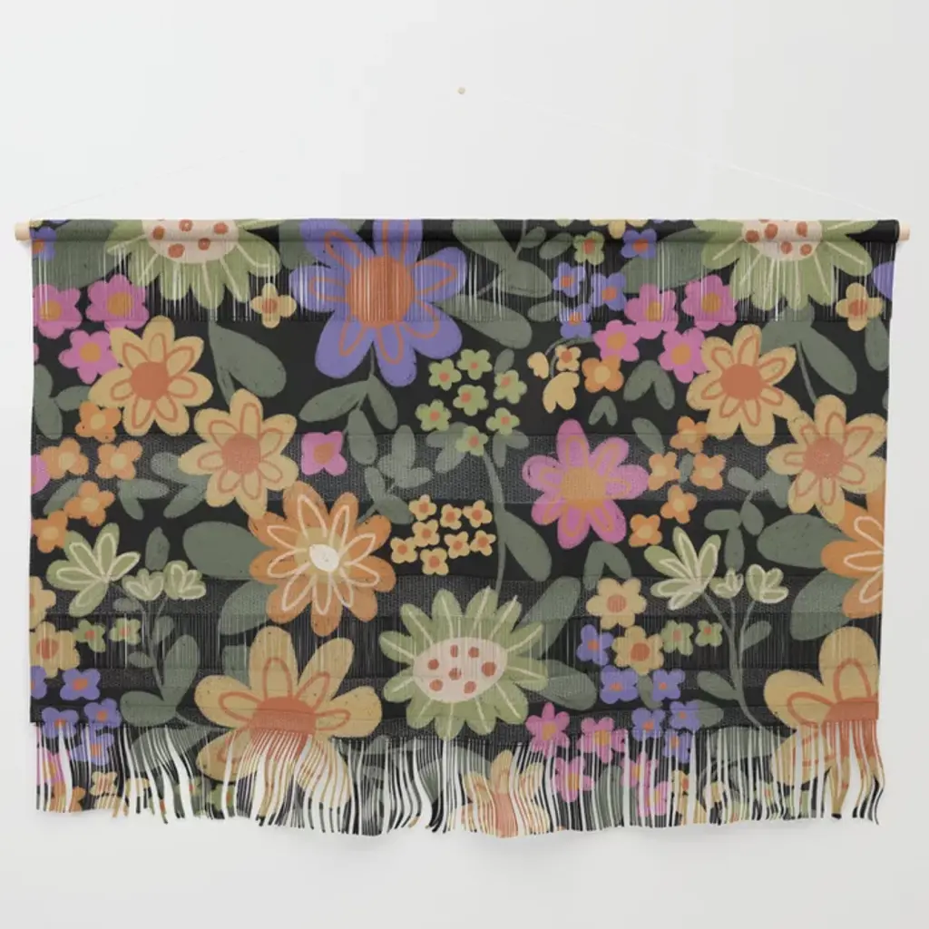 Cosmopolitan Flowers Navy Blue Wall Hanging