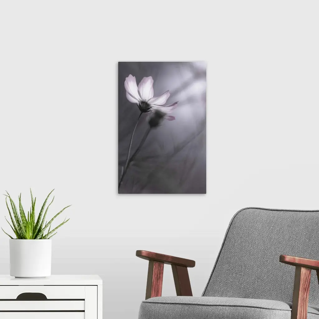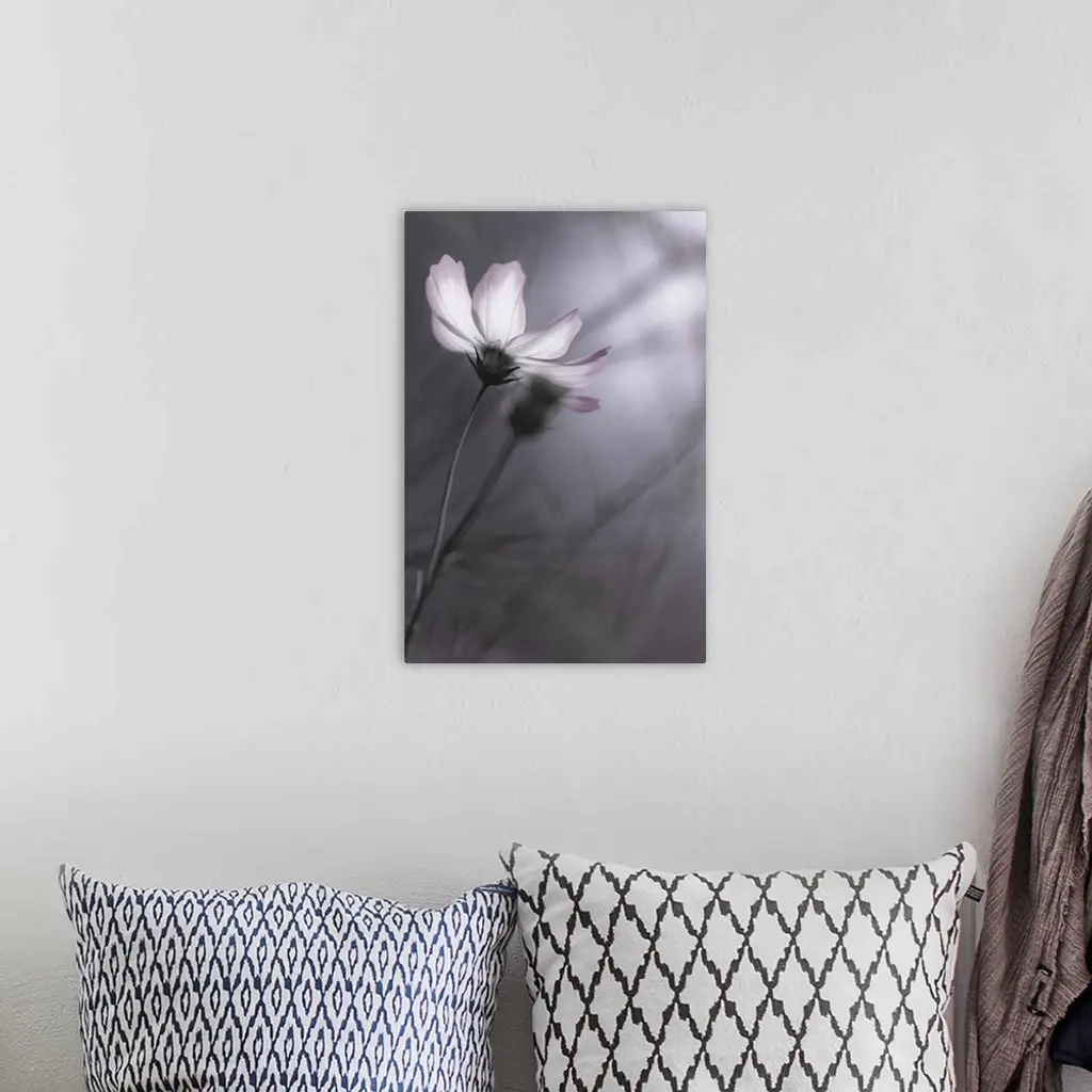 A pale-colored flower against a grey background in autumn.