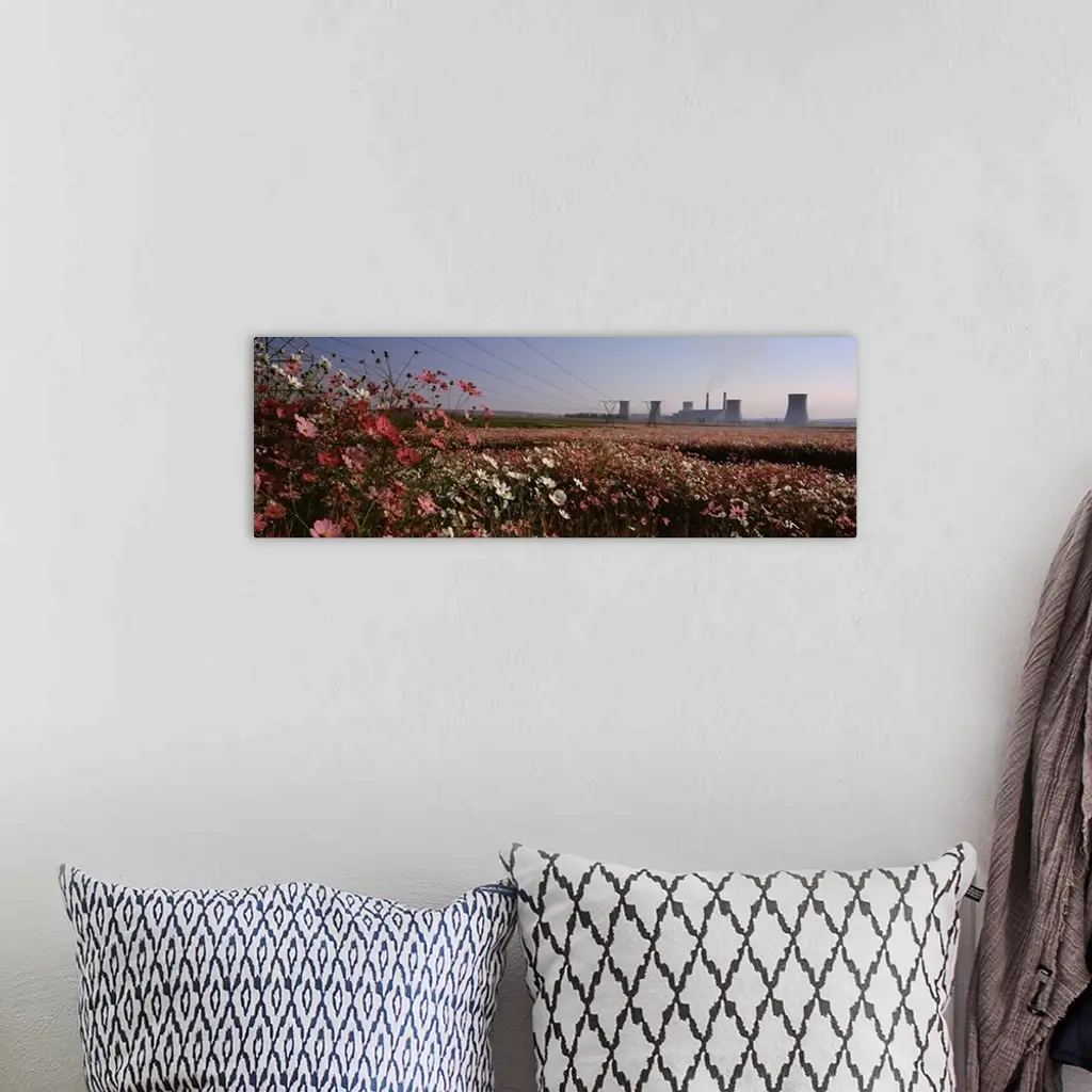 Cosmos flowers in a field with a power station in the background South Africa wall art for home and office decor. Discover canvas art prints, photos, mural, big canvas art and framed wall art in GreatBigCanvas.com's varied collections.