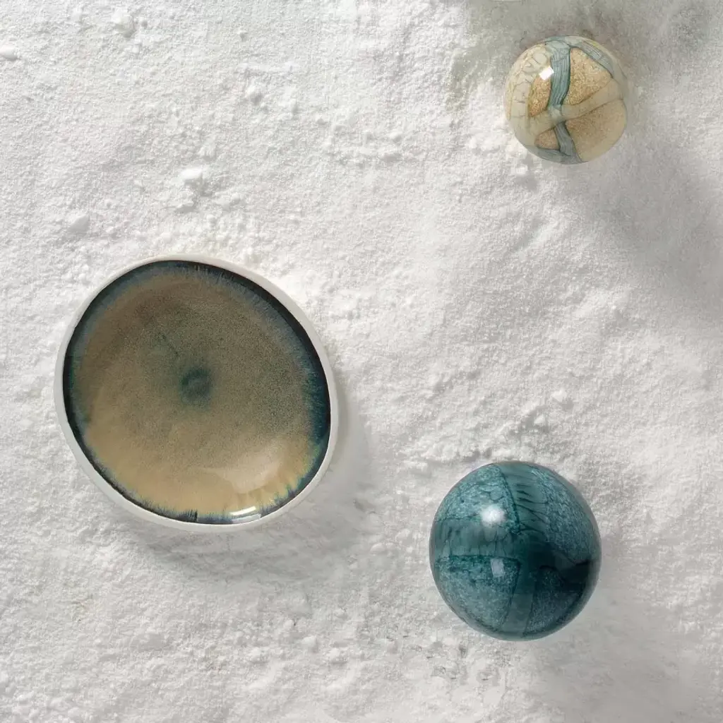 Style these decorative accent spheres on the bookshelf, entryway or as an accent in the bathroom for a serene moment. Made of hand-blown glass and featuring a swirl finish, this set of glass spheres are chic whether they're placed alone or grouped together.