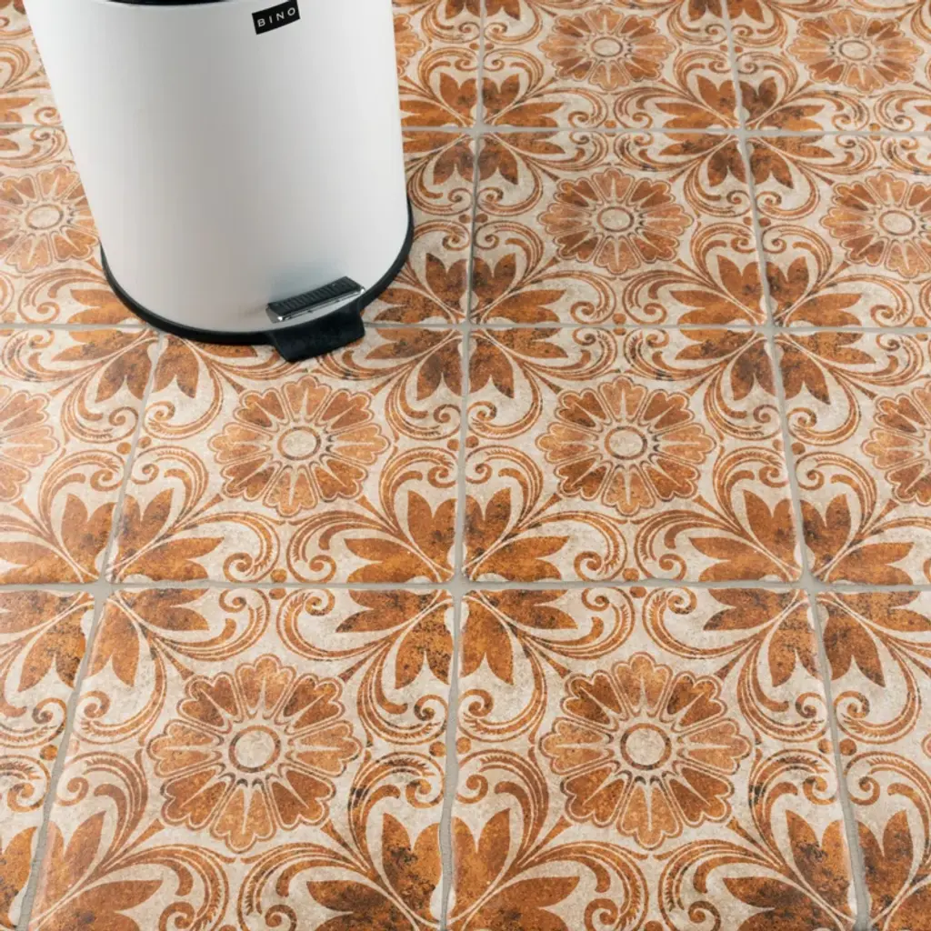 Our field tile has a classic, rustic look to it that complements many different decors. With a textured feel and rough stone look, this tile offers floral decor patterns in tawny, ochre, and terracotta tones that replicate a distressed, aged look. This tile has a deep, rich tone to it and a matte surface that can be used in residential floor and wall installations including, backsplashes, powder rooms and fireplace surrounds. Tile is the better choice for your space. This tile is made from natural ingredients, making it a healthy choice as it is free from allergens, VOCs, formaldehyde, and PVC.